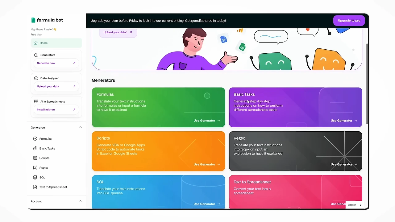 2. Formula generator : 엑셀 및 구글 스프레드 시트 내 필요한 함수를 생성