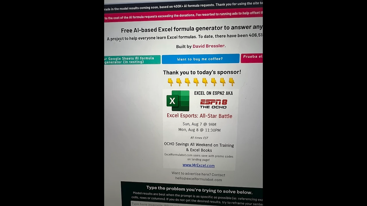 다행히, 광고라는 구세주가 나타났습니다. ESPN에서 이스포츠의 일환으로 여는 Microsoft Excel World Championship에서 광고 제안이 들어온거죠. (엑셀 이스포츠 대회가 있다는 것도 흥미롭네요) 구글 광고도 달기 시작하고요. 이곳 저곳에서 노출이 되다보니 뜻밖의 요청같은 것들도 많이 들어왔습니다. 뜬금없는 웹디자인 외주 요청도 들어왔다고 합니다.