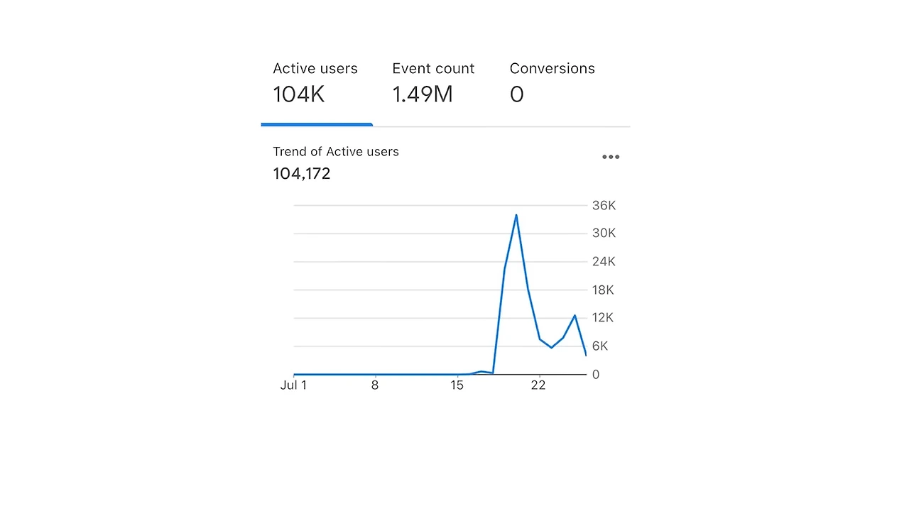 11K의 좋아요, 300개가 넘는 코멘트가 달리면서 David가 만든 엑셀 수식 생성기는 몇 달 동안 바이럴 효과를 누렸어요. 레딧에서 반응이 터진 후, 아래 그래프에서 볼 수 있듯이 그의 프로덕트는 AU 10만까지 찍게 됩니다.
