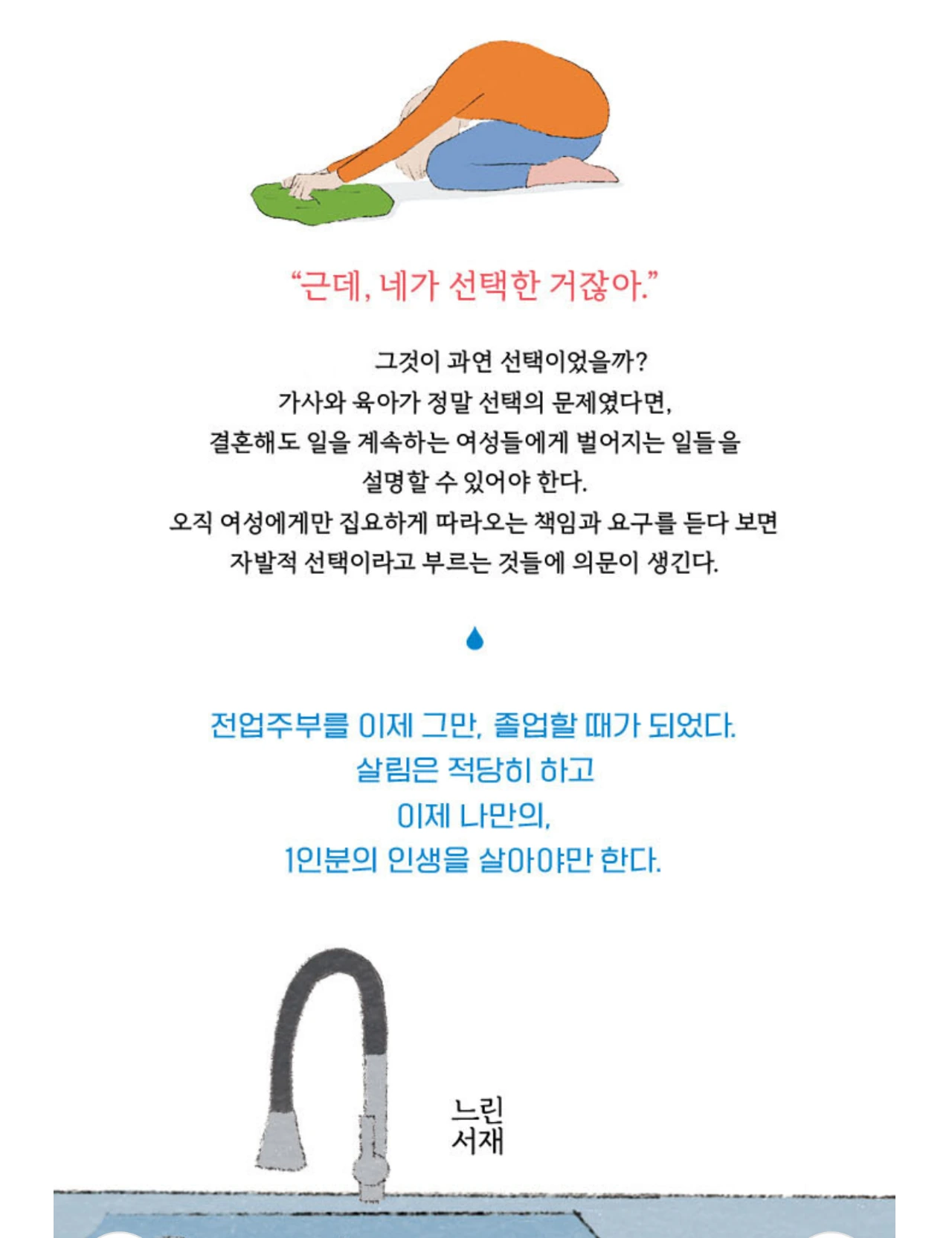 전업주부 10년 차인 저자는 이제 전업주부를 졸업하려고 한다. 전업주부로 불리던 그 세상에서 나와 이제 자신의 이름이 불리는 세상에서 살아가려고 한다. 가족이라는 공동체에서 구성원 모두