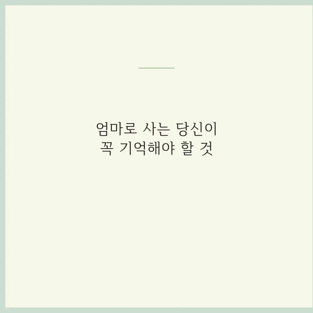 엄마로 사는 당신이 꼭 기억해야 할 것