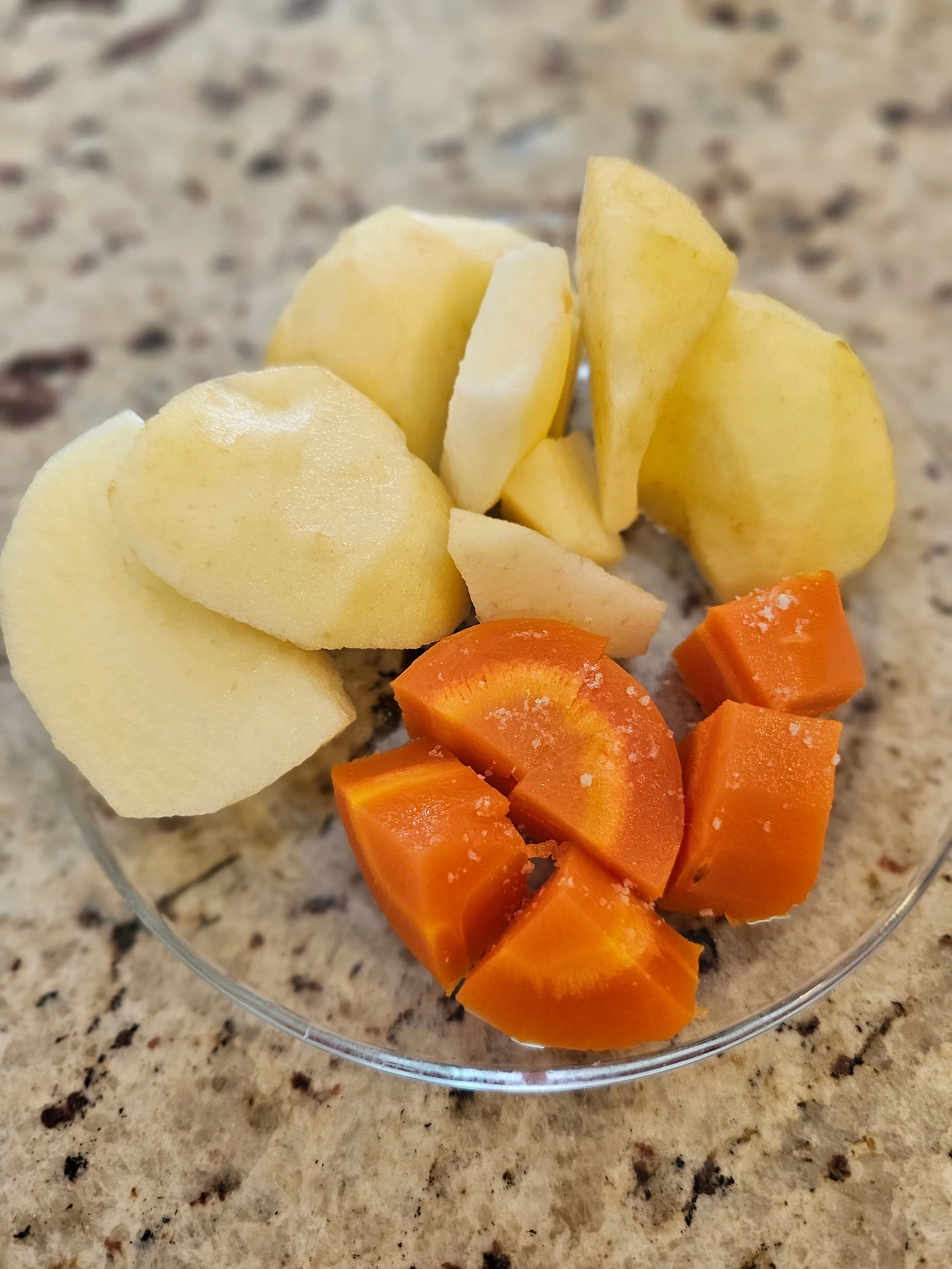 *요즘 아침으로는 주로 찐 당근과 사과를 갈아 먹었다.