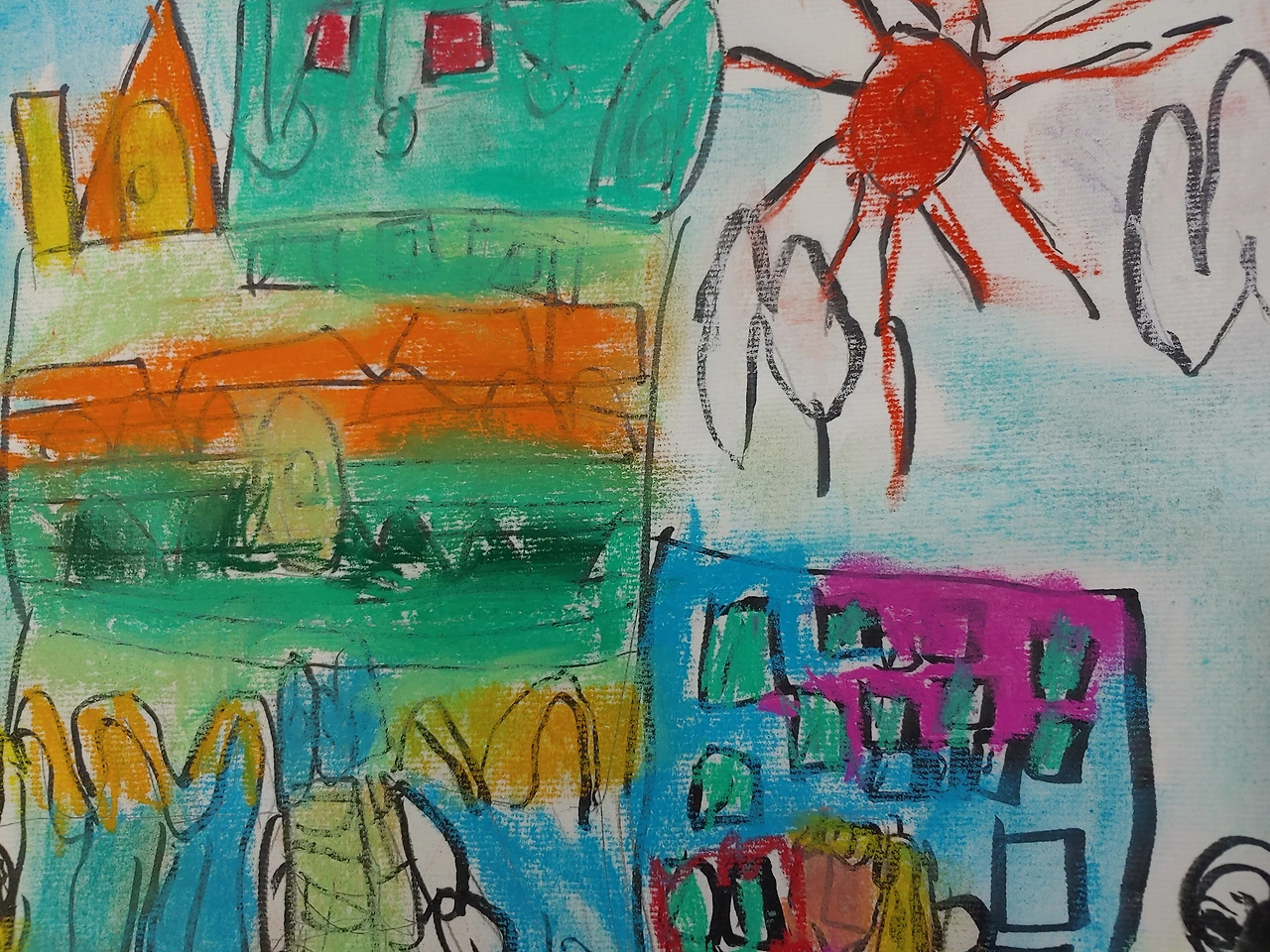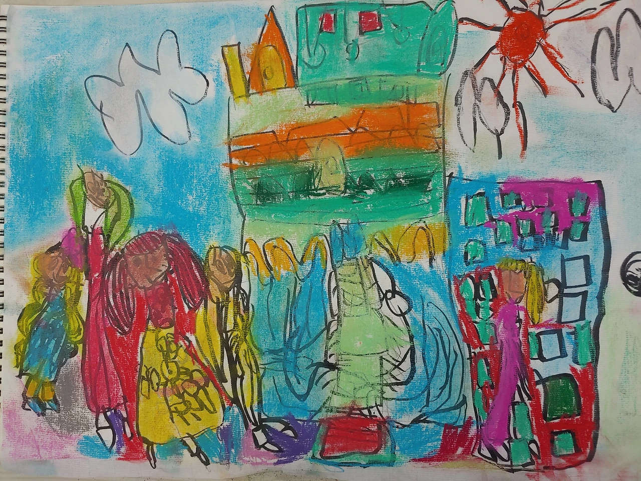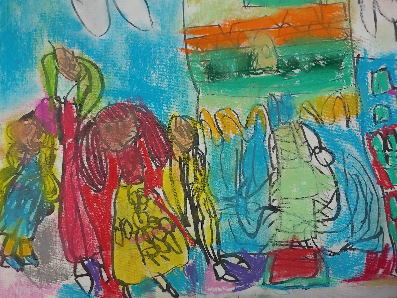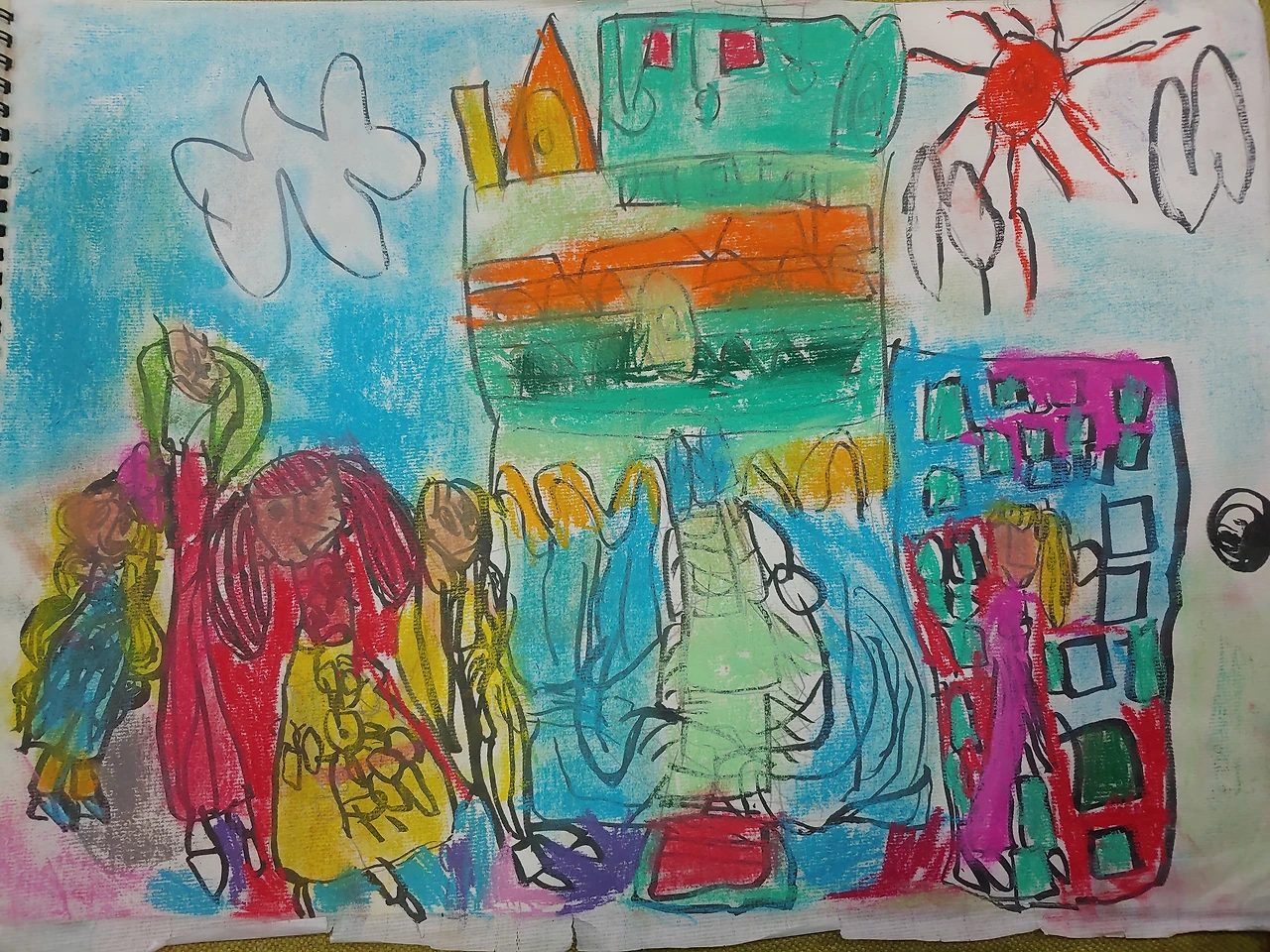 동그라미가 옛날 집과 옛날 사람들을 그렸다.