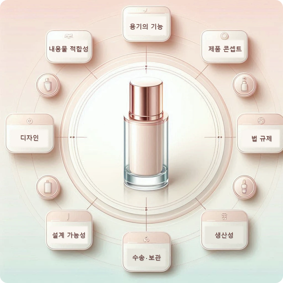 화장품 용기, 이렇게 선택한다 | 화장품 브랜드는 화장품의 포장 즉 용기를 설계함에 있어서 좌측의 이미지와 같은 다양한 요소를 종합적으로 고려합니다. 이런 기준 중에서도 안전 및 안정성과 관련되는 것만 간단히 추려보면 다음과 같아요.