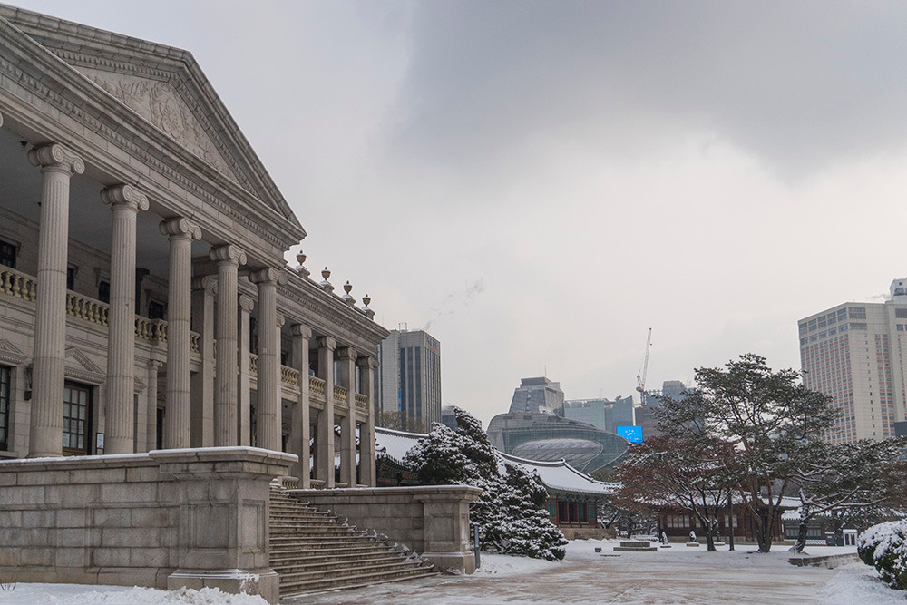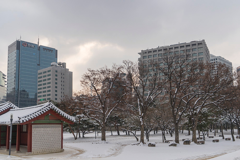 눈이 내린 덕수궁은 우리나라의 과거와 현재, 거기에 자연마저 어우러져 있었다. 잠시 짬을 내어 들린 것이라 오래 머물지 못하는 점이 아쉽기도 했다. 평일 오전이라 사람들이 그리 많지는 않았으나 시간이 흐르자 외국인 관광객들이 무리 지어 들어오기 시작했다. 눈 덮인 덕수궁을 보며 한국에 대한 좋은 추억들을 담고 돌아가길 바랐다.