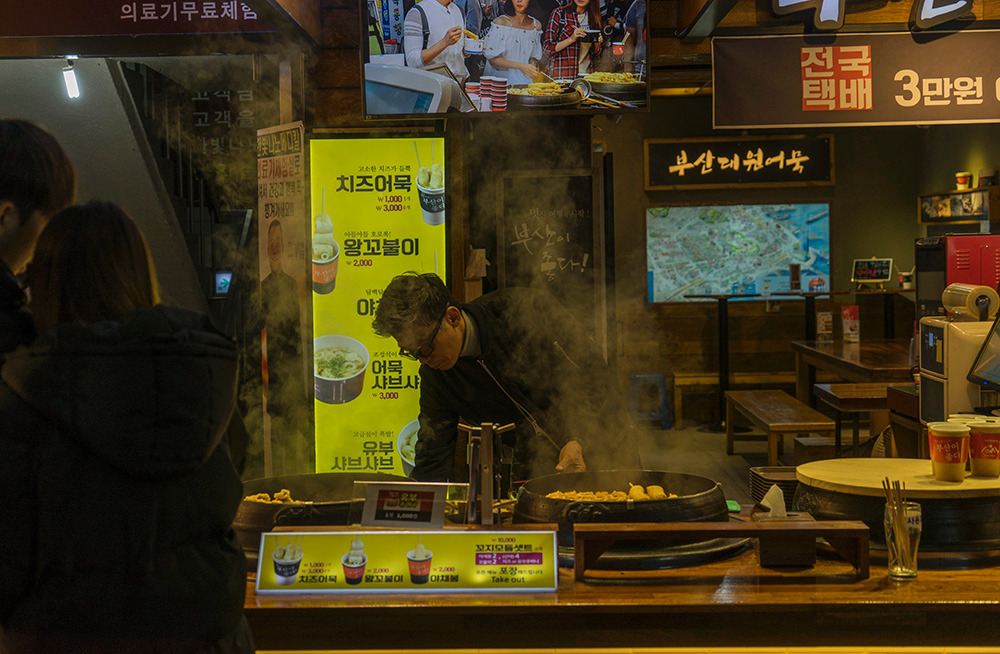 저녁 9시가 다 되어 부산에 도착했다. 이 시간에 저녁식사를 하기에는 아무래도 부담스러워서 최대한 간단하게 먹기로 했다. 문득 생각난 것이 깡통시장의 노점상들이었다. 부산역에서 자갈치역까지는 지하철로 불과 세 정거장. 자갈치역에 내려 번화한 남포동 거리를 잠시 걸어가니 저 멀리 깡통시장이 보였다.