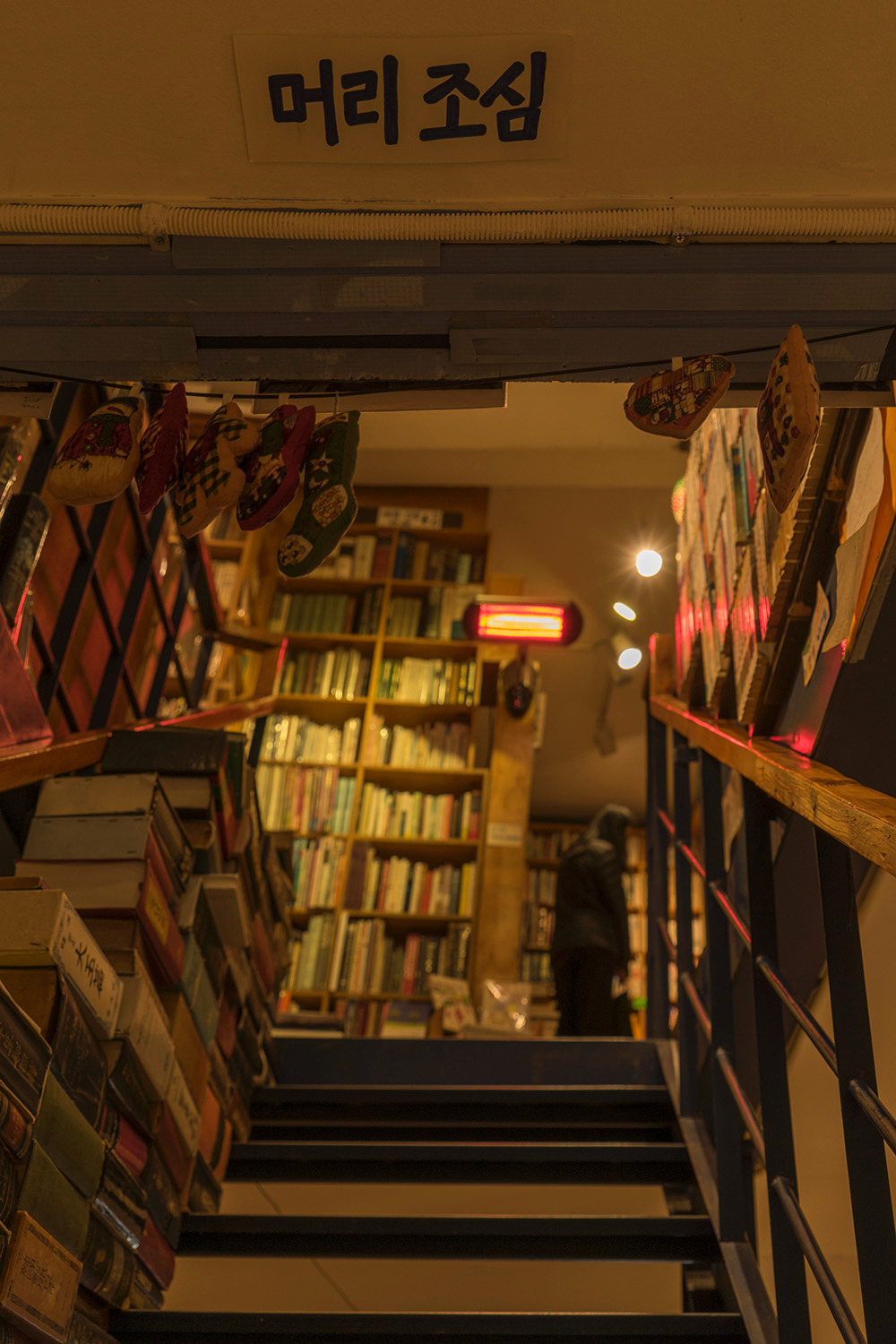 보수동 책방골목에는 여러 헌책방이 있다. 그 가운데는 헌책방과 함께 북카페를 운영하는 <우리글방>이 있다. 도로 쪽에도, 책방골목 쪽에도 입구가 있는다. 밖에서 보는 것보다 내부가 큰데, 지하에 책을 보관해둔 넓은 공간이 있기 때문이다. 헌책이 중심이지만 오래된 LP, CD, 악보 등도 함께 자리 잡았다. 커피를 마시며, 헌책을 골라 읽고, 그러다가 다 못 읽은 책은 사가지고 나오게 된다.