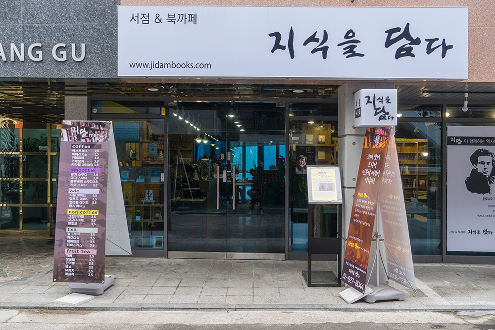 <지식을 담다>는 고려대 부근에 새로 생긴 인문학 서점이다. 보통은 줄여서 <지담>이라고 부른다. 졸업한 90학번 선배들이 재학생 후배들에게 책을 더 많이 읽히고 싶다는 마음으로 터를 잡았다. 지난 수년간 대학가의 많은 서점들이 문을 닫았다. 이제 서울시내에 남은 대학가 인문사회과학 서점은 서울대 앞 ‘그날이 오면’과 성균관대 앞 ‘풀무질’ 정도라 한다. 이러한 시점에 책방 문을 연다는 것은 어쩌면 그 자체가 무모한 도전이기도 하다.