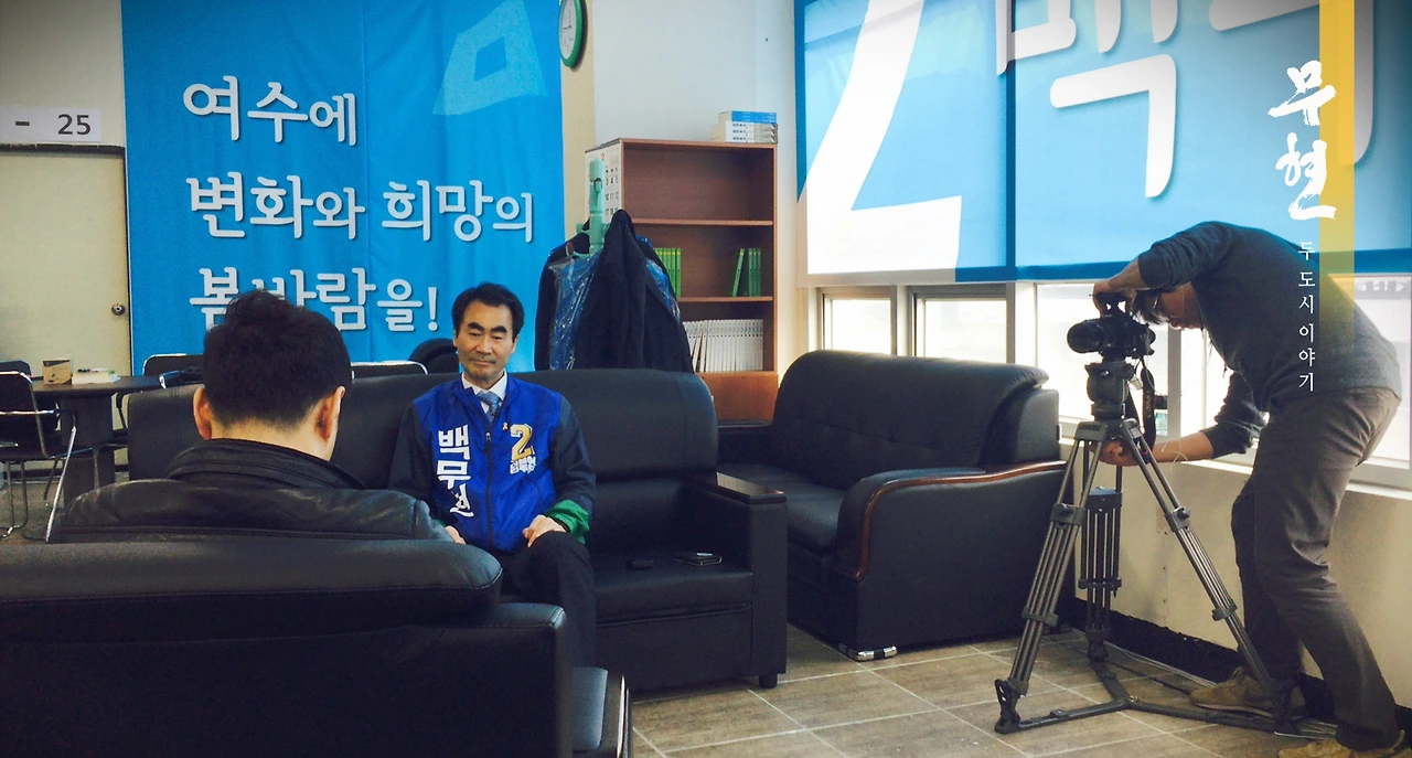 1. 영화 속에는 故노무현 전 대통령과 함께 또 한 명의 ‘무현’이 등장한다. 시사만화가인 백무현 화백이다. 두 사람의 비중이 같을 수는 없지만, 같은 이름을 가진 두 사람이 거쳐갔던 길을 마치 평행이론처럼 그려나간다. 이 영화에서 ‘두 도시의 이야기’라 함은, 노무현 후보가 출마했던 2000년의 부산, 그리고 백무현 후보가 출마했던 2016년의 여수를 가리키는 것이다. 부산에 출마한 노무현 후보는 영호남 지역감정을 자극하는 허태열 후보와 경쟁하고, 여수에 출마한 백무현 후보는 굳건한 지역기반을 가진 주승용 후보와 대결한다. 그리고 두 사람 모두 선거에서 패배한다.