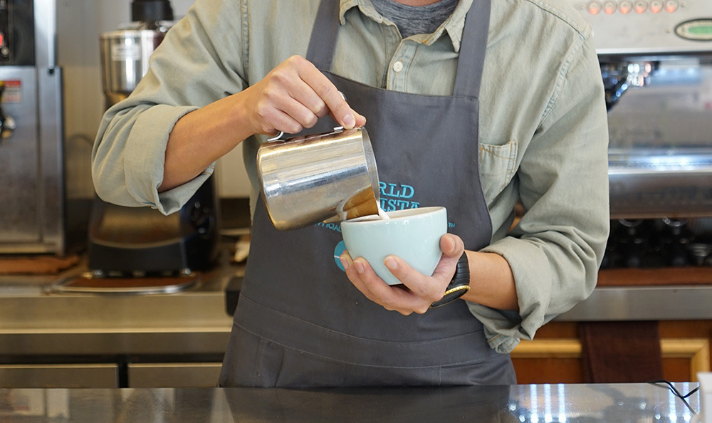 라떼를 만드는 과정은 보통 순서가 정해져 있다. 원두를 그라인더로 갈아 분쇄하고, 수평이 되도록 잘 눌러 탬핑을 해준다. 에스프레소를 추출한다. 스팀을 사용하여 우유 거품을 적절하게 만들어 준다. 우유 거품을 이용하여 라떼아트를 한다. 보통 하트부터 시작하지만 점점 더 복잡한 것들을 그려내기도 한다. 라떼아트 대회 참가를 준비하는 것은 도전의식을 심어줄 것이다.