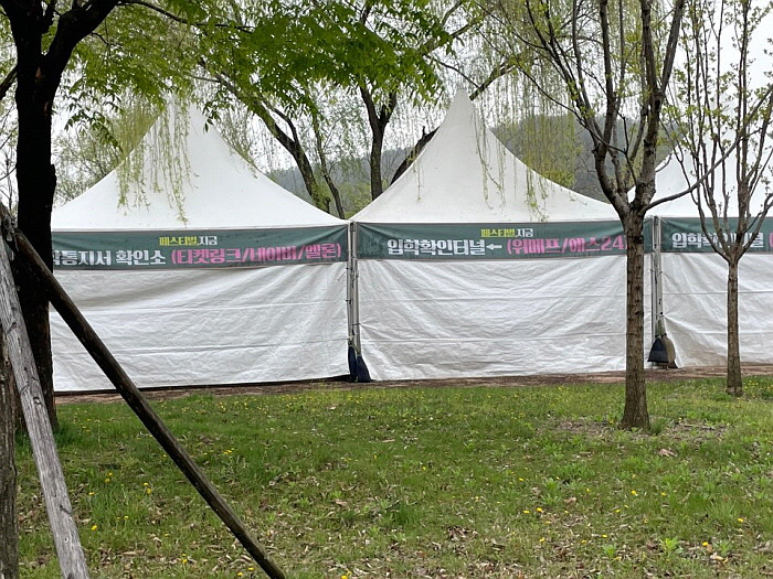 페스티벌은 오후 2시부터 저녁 9시 30분(첫날은 8시 30분)까지 열렸고, 공연장 입구는 학교 교문으로 변신해 있었다. 벽돌모형에 장난기 어린 낙서까지 학교 교문을 재현한 모습을 보고 반가움이 밀려왔다. 의무실은 양호실, 안내소는 교무실, 물품보관소는 사물함, 티켓 확인하는 통로는 입학확인터널, 티켓확인소는 입학통지서 확인소라는 명칭으로 바뀌어 있었다. 교문부터 명칭까지 학교를 재현한 모습을 보니 정말 학교에 들어가는 것 같았다. 설렘에 가슴이 뛰면서도 목이 메고 눈물이 글썽거렸다. 10대의 학창시절이 그리 행복하지 않았던 나로서는 납득하기 어려운 감정이었다. 일단 이 부분은 뒤로 하고, 어서 ‘지금’ 학교에 입학하기 위해 교문 안으로 들어갔다.
