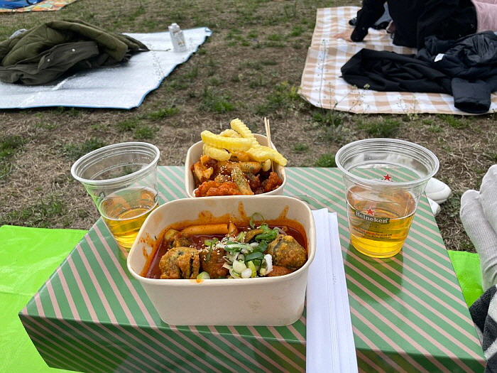 페스티벌에 갈 때는 파릇파릇하고 상큼한 분위기의 의상이나 평소 좋아하는 의상을 입는 편인데, 교복을 입고 페스티벌을 즐기는 건 처음이었다. 일상복을 입었을 때보다 더 흥이 절로 났다. 돗자리에 앉아 맛있는 음식을 먹고, 논알콜의 맥주를 마시고 공연을 즐길 때는 새싹이 된 기분도 들었다.