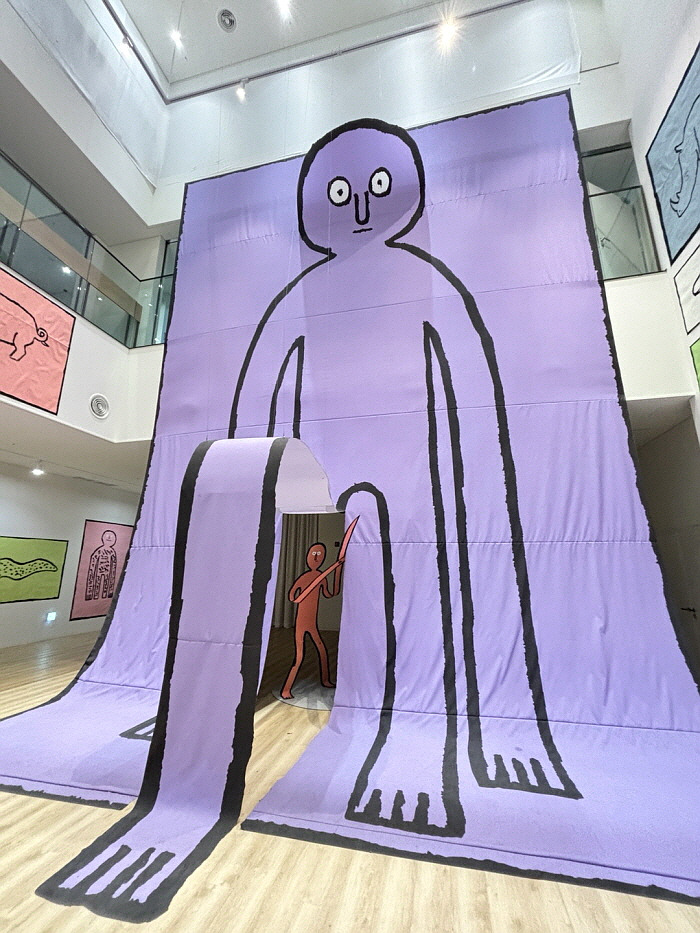 그것도 잠시, 또 자기외모에 불만을 느낀다. 그 종이인간은 친구의 패션스타일을 부러운 눈길로 바라봤다. 그러고는 모자를 쓰고, 망토를 두르며 또 다른 자신을 만들어냈다. ‘페이퍼정글’ 출구 쪽에는 벽화 속 그 종이인간이 있었다. 보라색의 고깔모자와 망토, 동그란 얼굴에는 반창고가 덕지덕지 붙어 있었다. 얼굴 모양과 패션스타일까지 원하는 대로 바꾸는 데 성공했지만, 여전히 불만족스러운 표정을 하고 있었다. 내 시선에 안타까움의 필터가 장착돼서인지 그 표정이 슬퍼 보이기까지 했다.