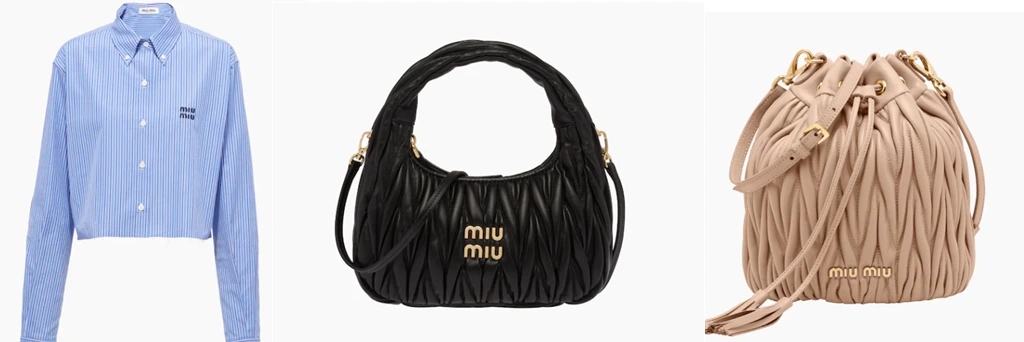 (좌)스트라이프 포플린 셔츠 (중)완더 마테라쎼 호포 백 (우) 버킷백 / 출처 : 미우미우 홈페이지