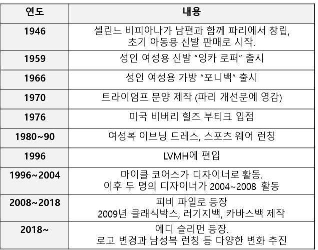 1945년, 창립자 셀린느 비피아나는 남편과 함께 셀린느를 창립합니다. 당시 셀린느는 아동용 신발 판매로 그 시작을 알렸는데요, 시작부터 "대박"이 나기 시작합니다. 이유는 크게 두 가지인데요. "Less is more"라는 가치관시기의 적절함이었죠. 아동들은 성인에 비해 걸음걸이가 불안정하니, 장식적인 요소를 제거해 무게를 가볍게 만드는 미니멀한 디자인을 선보였습니다. 깔끔한 디자인에 착화감도 좋으니, 지금도 그렇듯 엄마들 사이에서 입소문이 나는데요. 마침 창립일인 1945년은 2차 세계대전이 끝나던 해입니다. 역사적으로 전쟁 종료 직후에는 아이들이 많이 태어나고, 우리나라도 이들을 베이비부머라고 일컫고 있습니다. 상승하는 출산율에 힘입어 셀린느의 매출 또한 함께 올랐다고 하죠.