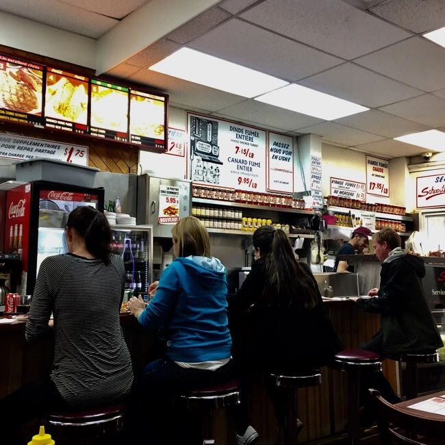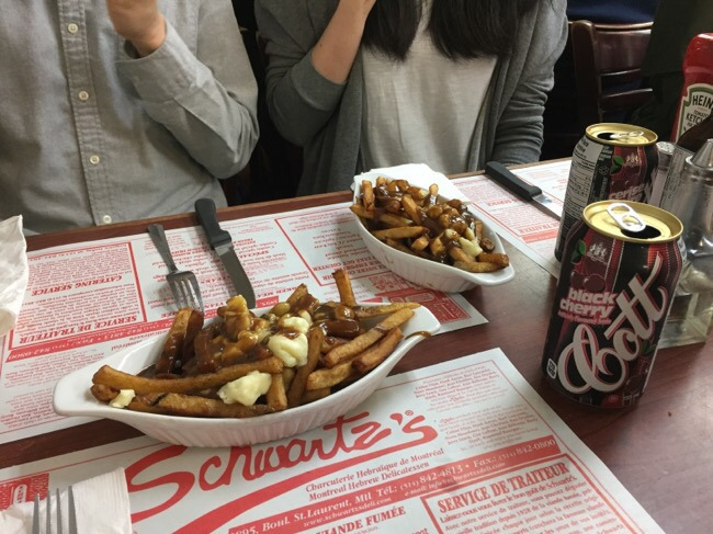 Schwartz's Deli도 몬트리올을 대표하는 맛집 중 하나다. 약 90년의 역사를 자랑하는 이곳은 매번 문전성시를 자랑할 만큼 현지인들과 관광객들에게 사랑받는 음식점이다. 퀘벡의 자랑이자 세계 남바완 디바 셀린 디옹도 한때 이 가게의 소유권을 가지고 있기도 했다. 소박한 외관과 좁은 내부는 언제나 Smoked Meat Sandwich와 이 집에서만 맛볼 수 있는 독특한 Cherry Coke를 즐기는 사람들로 가득하다. 하지만, 나에게 이 집은 샌드위치보다 푸틴이 맛있는 집으로 기억될 것 같다.
