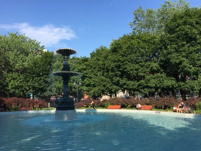 Square Saint-Louis은 상대적으로 정말 작은 공원이다. 한가운데 카페로 보이는 작은 건물을 중심으로 넓은 직선거리가 불과 150m 정도밖에 안되어 보인다. 하지만 몬트리올에서 가장 아름다운 분수가 있는 공원이다. 이곳은 마치 유럽의 공원 분위기를 떠올리게 한다. 나도 이 공원에 처음 갔을 때, 이탈리아 로마와 밀라노에서 방문했던 공원의 분위기를 느낄 수 있었다. 이곳에서는 가족단위의 사람들보다 음악과 책을 읽으로 홀로 나온 사람들, 또는 사랑하는 사람과 데이트를 위해 찾은 연인들이 주로 보였다.