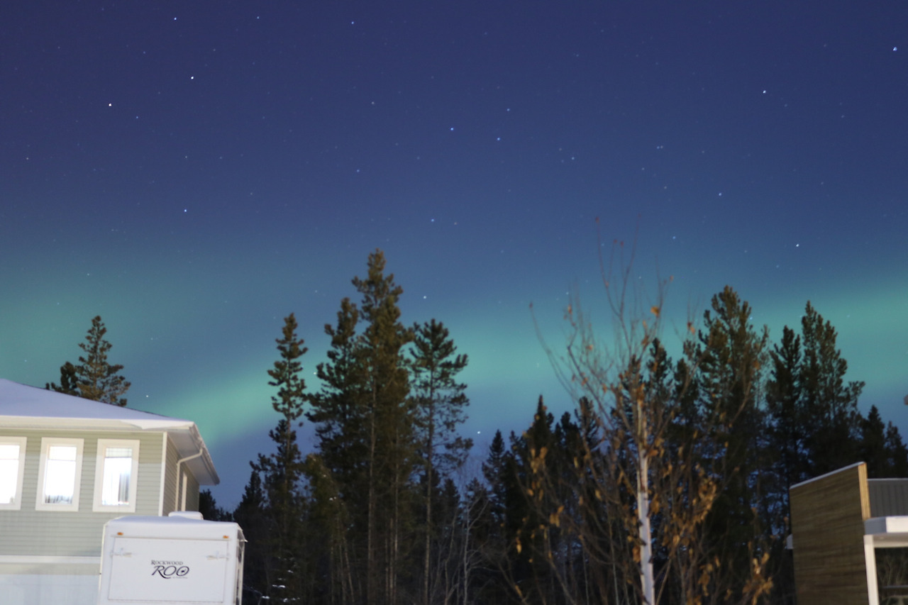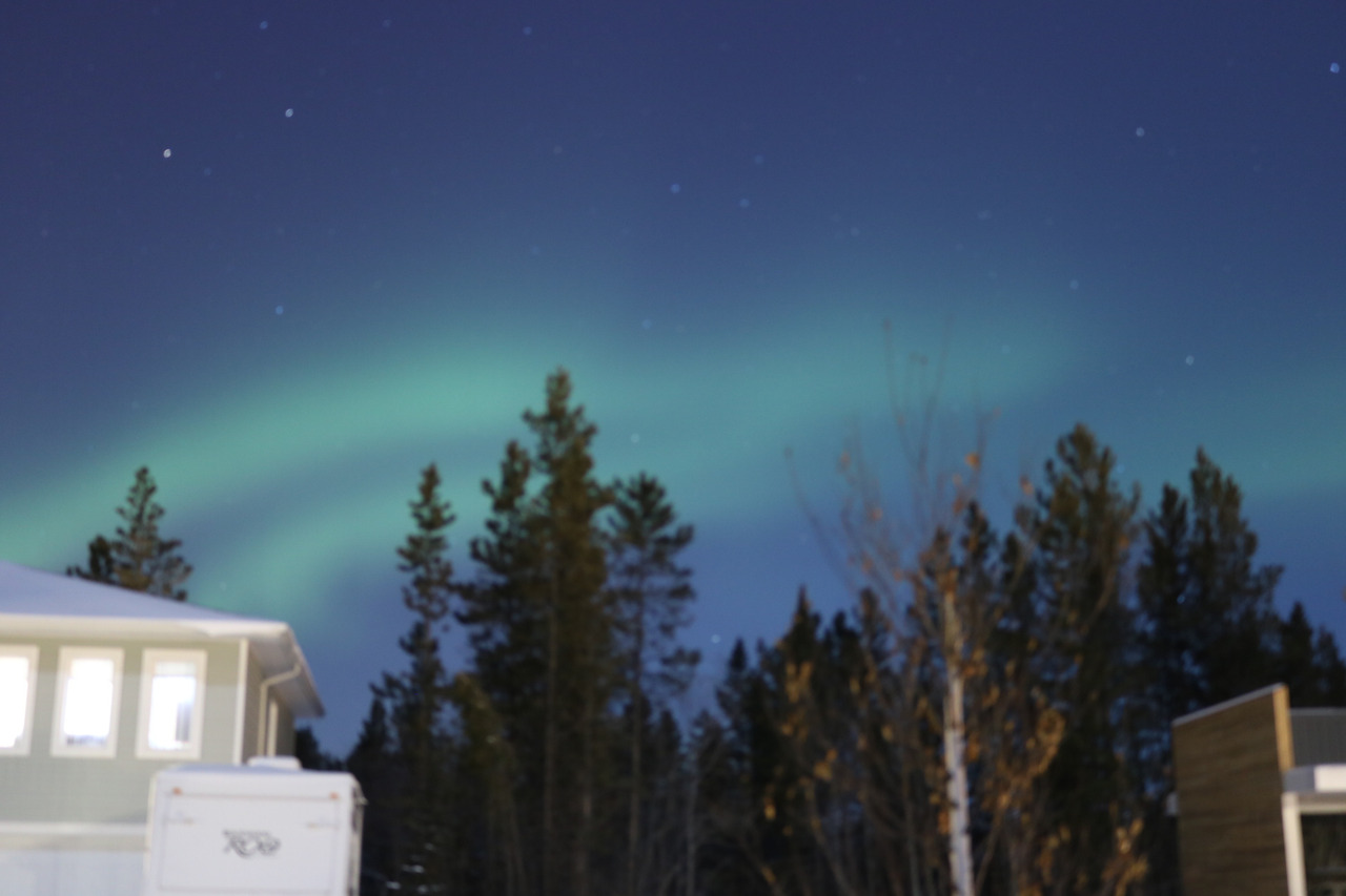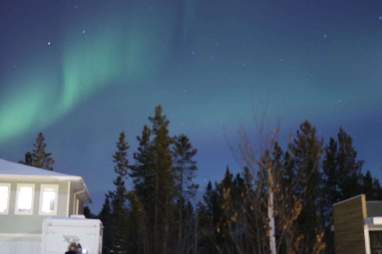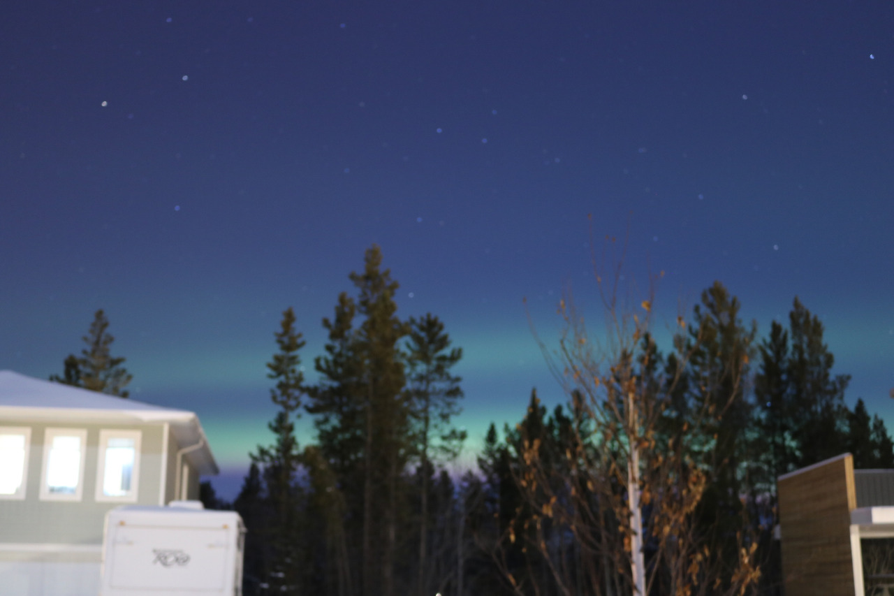사실이었다. 화이트호스에 도착한 첫날밤부터 오로라를 볼 수 있었다. 이제 비행기를 타기만 해도 빨리 지쳐버리는 비루한 체력 탓에 첫날은 쉬고 있었는데, 갑자기 주인아저씨가 내려오더니 지금 오로라가 나타났으니 얼른 밖으로 나가보라고 한다. 우리는 허둥지둥 옷을 챙겨 입고 밖으로 나갔다. 정말이었다. 비록 가정집의 인공 불빛 때문에 선명하게 보이진 않았지만, 지붕과 처마를 넘어 먼 곳에서부터 초록색 빛이 흔들흔들 밤하늘을 유영하고 있었다.
