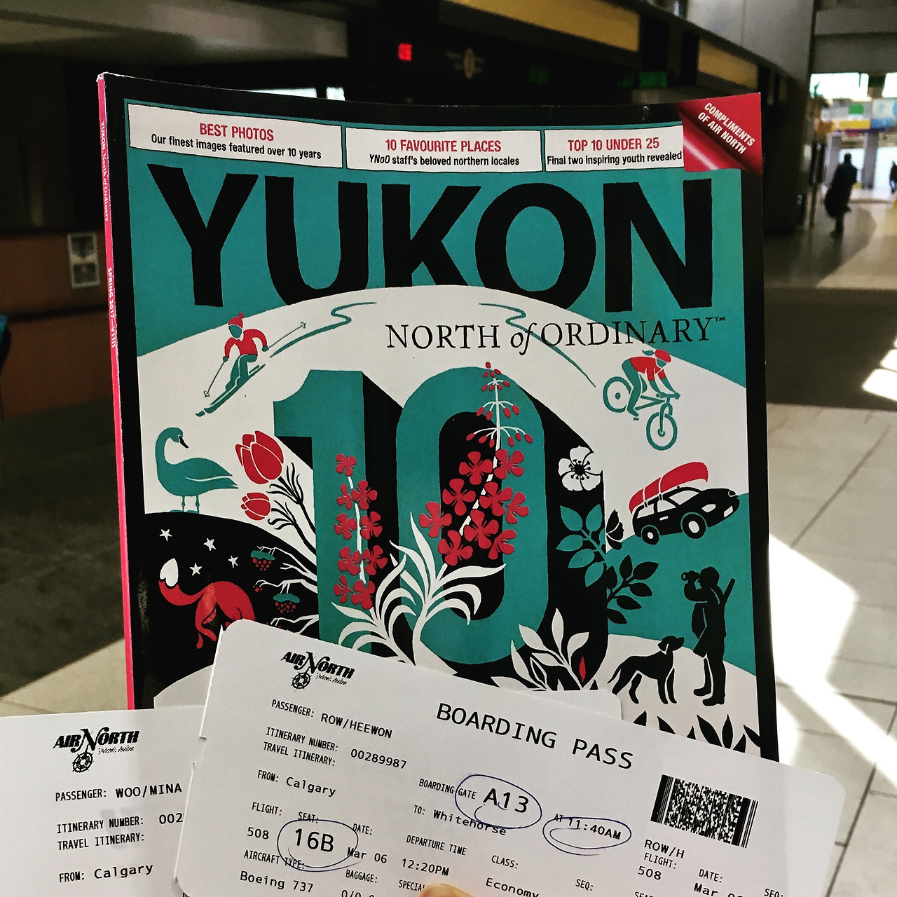 우리는 캘거리 공항을 통해 Air North라는 캐나다 북부 로컬 항공사를 타고 화이트호스로 건너갔다. 비행시간은 약 2시간 30분 정도가 걸렸으며, 2017년 3월 당시 기준으로 1인당 왕복 비행기 값은 약 500 캐나다 달러 정도였다. Air North는 로컬 항공사답게 크기도 작고 최소한의 서비스를 제공하는 항공사였다. 우리가 탑승하던 때도 비행기를 이용하던 승객들은 대부분 화이트호스와 캘거리, 에드먼턴(Edmonton)을 이동하는 캐나다 현지인들이 대부분이었다. 다들 서로 아는 마을 주민들인지, 어찌나 반갑게 서로 인사하고 떠들던지, 너무나 정겨워 보였다. 하긴 화이트호스 인구가 겨우 2만 5천 명인데.