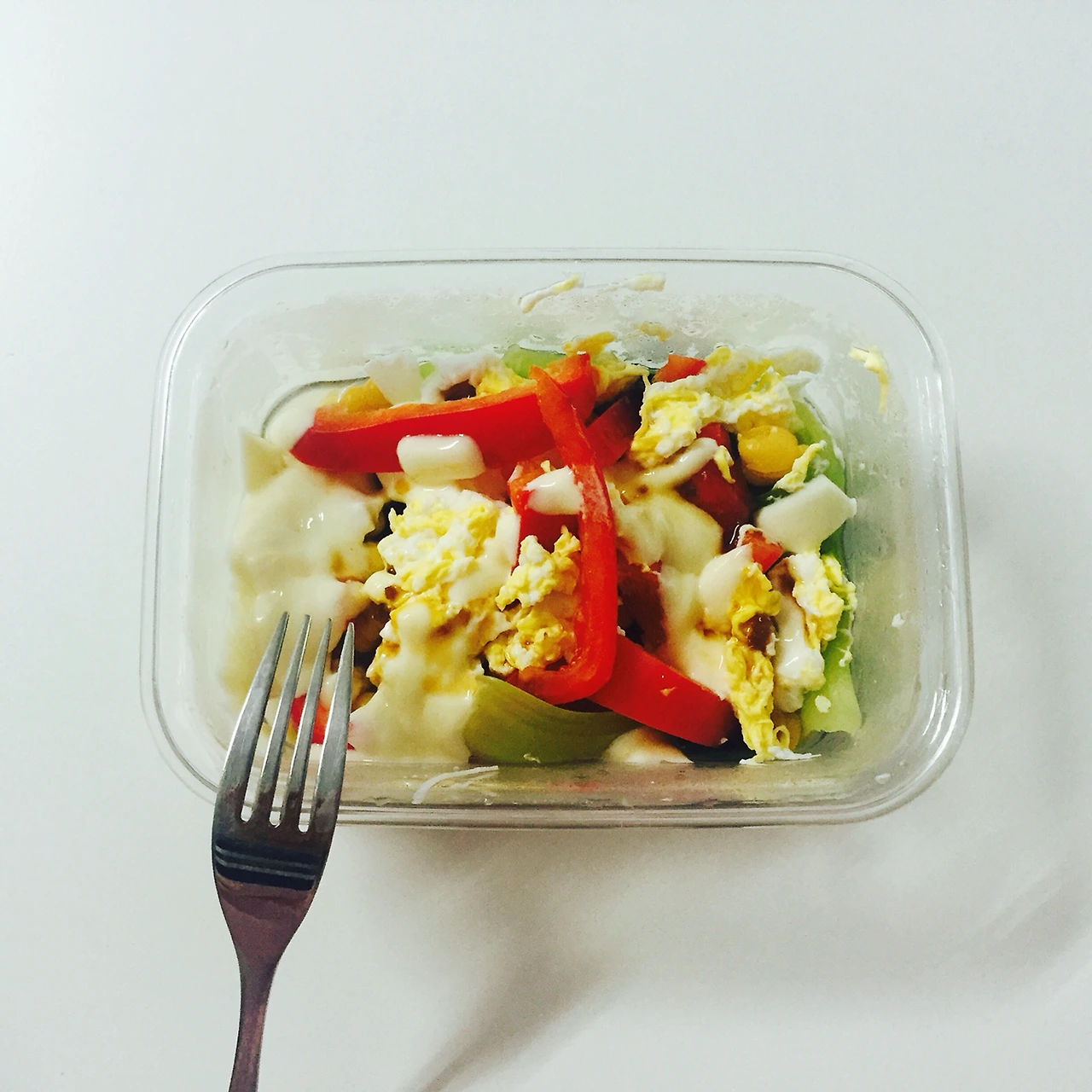 도시락이다보니 요 상태에서 딱 닫고 출근하면 열때문에 치즈가 녹게된다. 드레싱은 오리엔탈이나 이탈리안 같은 걸로 했다.