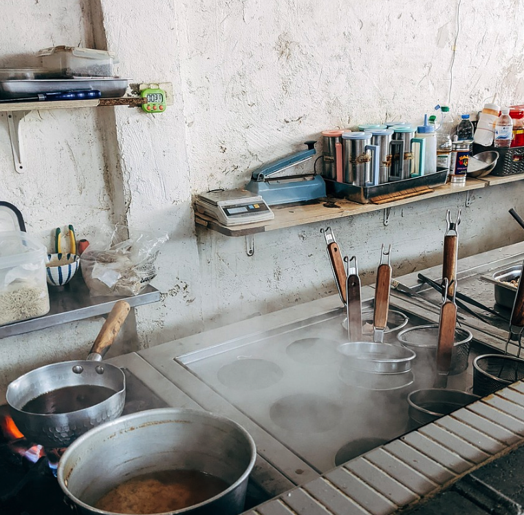 문은 닫았지만 가게는 아직 한창 돌아가고 있다. 가스불은 꺼지지 않았고 바닥은 하루종일 쌓인 기름으로 번들거린다.