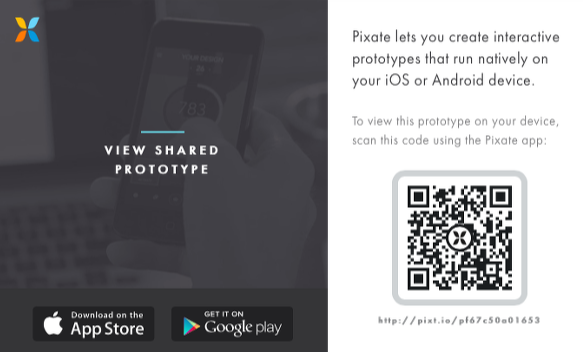 프로토타입은 모바일 전용 Pixate를 사용해 키스크린 위주로 빠르게 만들어보았습니다. 샘플은 전용 앱으로만 내보낼 수 있어 App store에서 Pixate 설치(IOS) 후 아래 QR코드를 스캔하시면 됩니다.(10월 기준으로 Pixate 서비스가 종료돼 이용할 수 없게 되었습니다.)