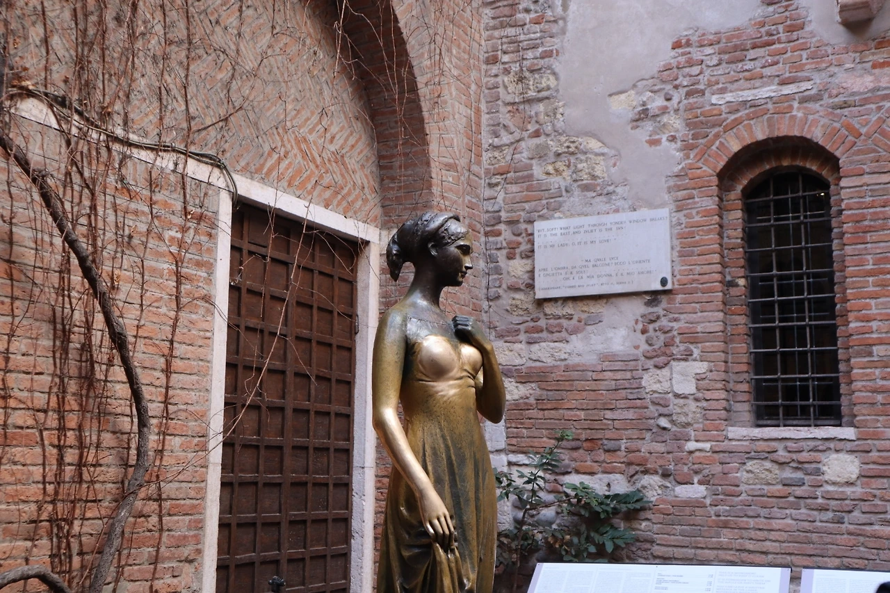 입장료를 별도로 내면 건물 안으로도 들어갈 수 있는데, 마당과 기념품샵만 둘러보고 왔다. 줄리엣 동상의 왼쪽 가슴을 만지면 사랑이 이루어진다는 전설이 있다. 자세히 보면 가슴 부분만 색이 바랬다.