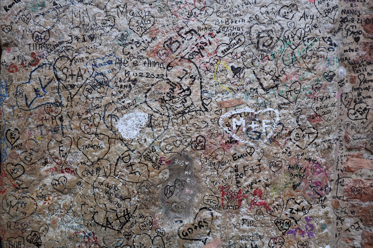 기념품 가게도 들렀다. 크게 살만한 건 없었지만 벽에 사람들이 그린 낙서가 눈에 띄었다. 남산에 걸어둔 사랑의 자물쇠가 생각났다.