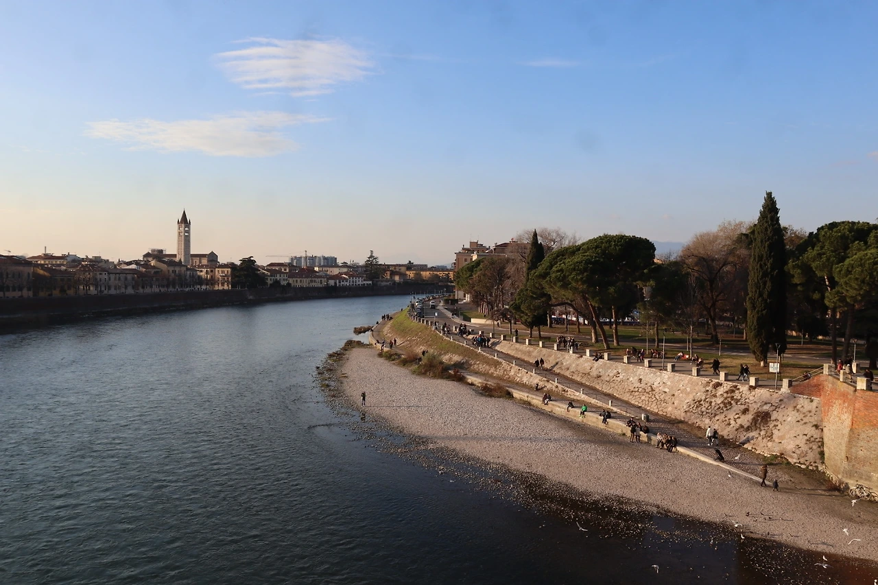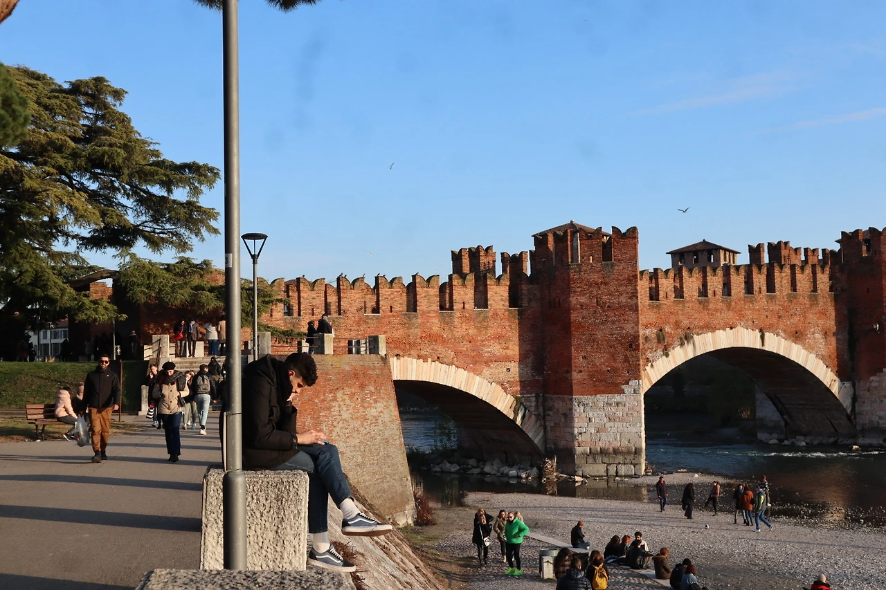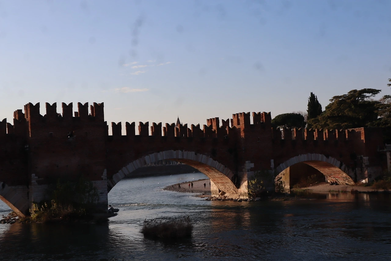 호스텔과 관광지는 시가지 쪽이었는데, 거기서 카스텔베키오 다리를 건너 반대로 넘어와야 예쁜 강의 전경을 볼 수 있다. 카스텔배키오 다리는 14세기에 벽돌, 대리석을 이용해 지어진 아치형 다리. 제2차 대전 이후 재건되었다고 한다. 추가로 돈을 내면 다리 입구에 있는 박물관에 들어갈 수 있다.