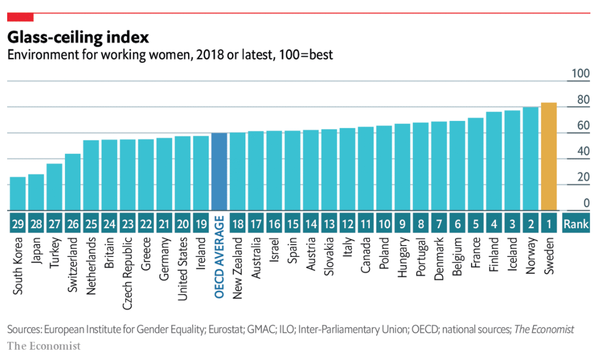 보시면 알겠지만, 우리나라는 형편없다. OECD 평균 보다 한창 못 미친다. 위 기사 링크를 가보시면 아시겠지만, 아직까지 남성과 여성의 수당 격차는 35%, 여성은 남성에 비해 직업 참여율이 약 20% 이상 떨어진다(기타 교육, 관리자 여성 비율 등의 데이터는 출처 기사에서 참고하세요).