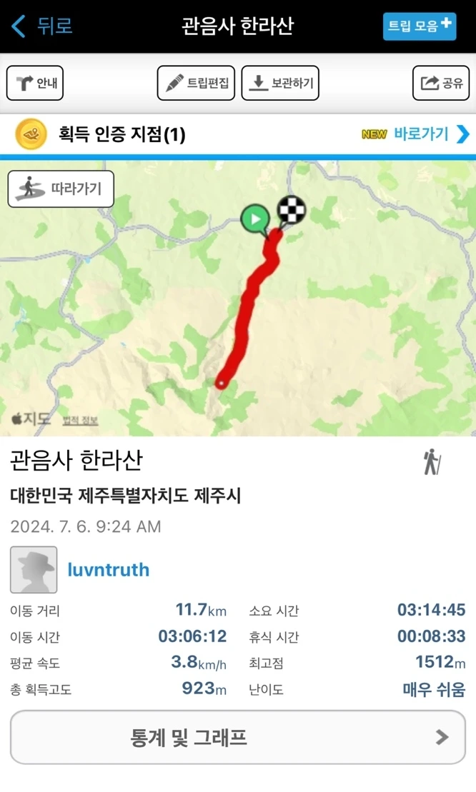 화산이 터져 만들어진 섬이니 당연한 이야기지만 그래도 이렇게 직접 걸어보니 제주도의 부드러움이 더욱 와닿았습니다. 삼각봉 대피소는 보통 일반인들 기준으로 편도 2시간 30분 정도 걸린다고 합니다. 그런데 저는 삼각봉 대피소에서 초코바와 물을 먹고 쉬는 시간까지 합하여 3시간 만에 왕복 산행을 완료했습니다.