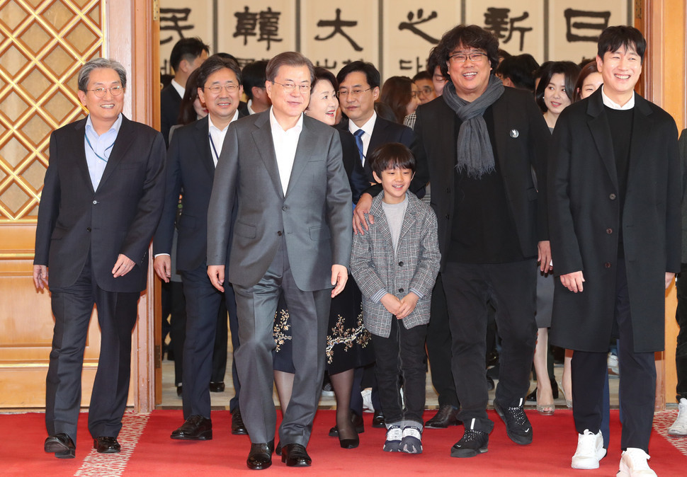 '블랙리스트' 봉준호는 감회가 남달랐을 터이다. 21세기에 독재를 꿈꿨던 어떤 한 '철창의 여인'으로 인해 사장당할 뻔했던 그의 재능이 같은 곳, 다른 사람은 그를 초청까지 하였기 때문이다(물론 '사장'까지는 오버이다). 평소 인터뷰 등에서 관찰된 봉준호의 덤덤한 기질로 봐서는 "그런 거에 연연하지 않는다"라고 할 것 같지만, 그렇게 쿨한 사람이었다면 애초에 기생충 같은 영화는 만들지 않았을 것이다. 그래서인지 청와대에서 그의 표정은 아주 밝아 보였다.