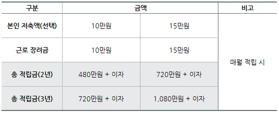 신규채용자를 대상으로 하는 “청년내일채움공제”는 2년형과 3년형 상품 두가지로 구성되어 있고, 재직근로자 대상 상품도 동일한 이름으로 소개되고 있다. (재직근로자 대상 내일채움공제의 경우 정부지원금이 존재하지 않는 기업, 근로자 간 1:1 매칭 상품으로 제외)