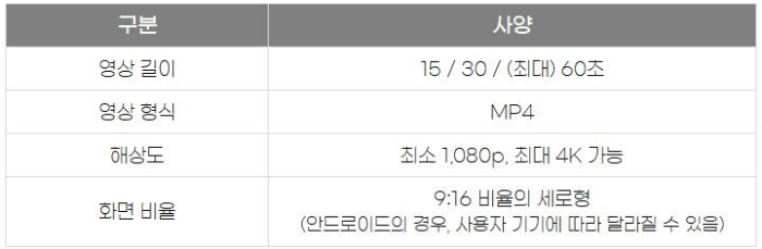 릴스는 출시 당시 15초 내의 영상이 기준이었으나 이후 점차 영상 길이 제한이 길어지며, 지난 7월에는 최대 60초까지 영상 제작 및 게시가 가능하게 되었다. 참고로 최근 틱톡도 최대 60초였던 영상 길이 제한을 최대 3분으로 확대했다. 더불어 영상은 9:16 비율의 세로 컨텐츠가 기준으로 모바일에 최적화되어있다.
