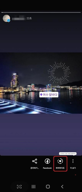 3. 업로드된 스토리 클릭 후 하이라이트 버튼을 클릭