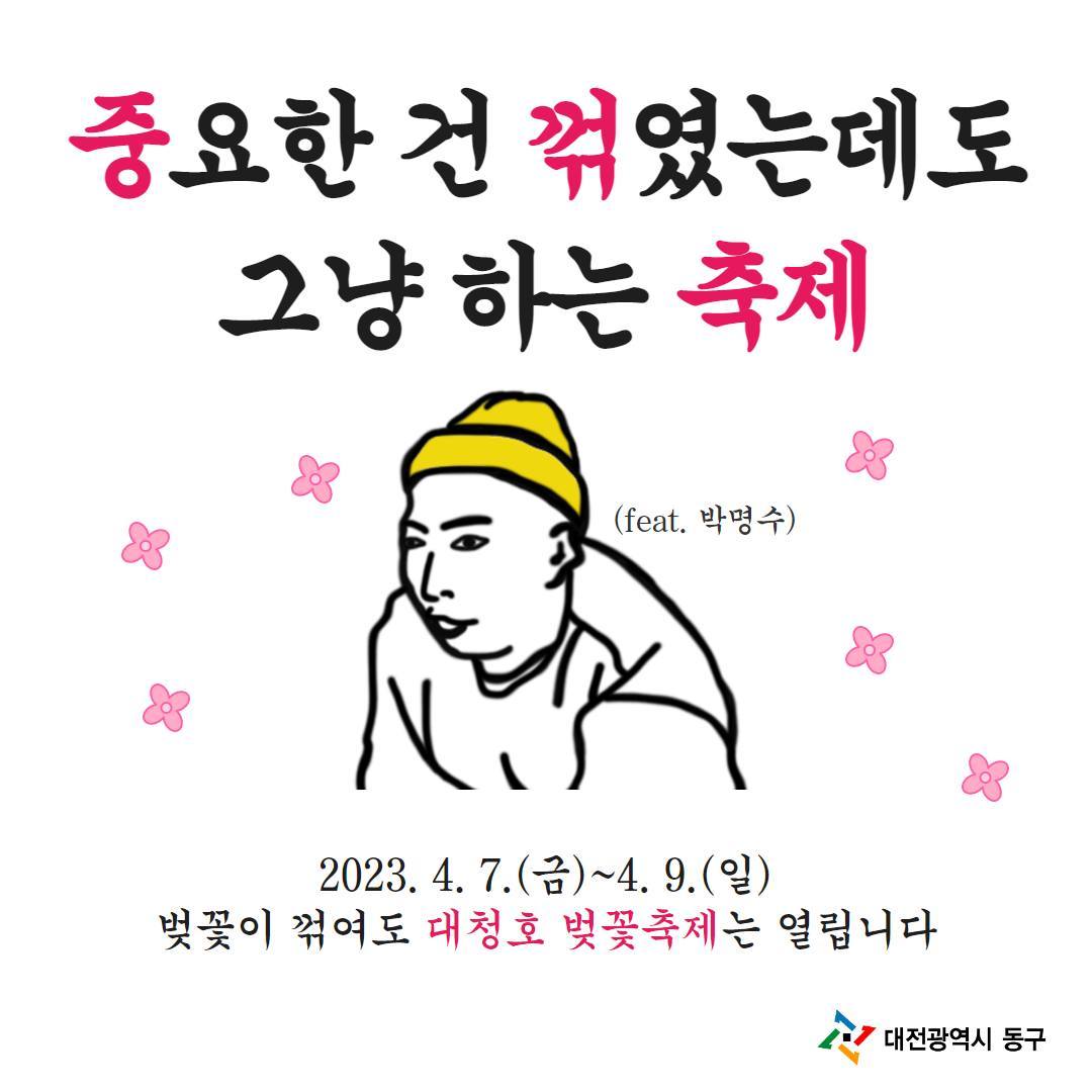 그리고 최근 대전 동구청이 4년 만에 다시 개최되는 '대청호 벚꽃축제' 홍보에서 '중꺾그마'를 활용하여 다시 한번 화제가 되었다. 올해는 벚꽃이 평년보다 이르게 개화한데다 하필 축제 시작 전 내린 비로 인해 축제의 주인공, 벚꽃이 모두 져버리는 참사가 발생했다. 벚꽃축제에 벚꽃이 없는 절망적인 상황이었지만 대전 동구청 직원들은 '중꺾그마'를 활용해 '중요한 건 꺾였는데도 그냥 하는 축제'라는, 상황에 딱 맞는 온라인 홍보물과 현수막 등을 만들었고 웃픈 이 홍보물들이 온라인 커뮤니티 상에서 화제가 된 것이다. 다행히 행사는 꽃샘추위에도 성공적으로 마무리되었다고 한다.