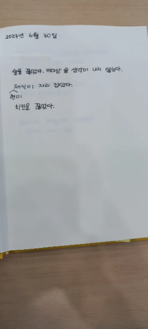 그리고, 책 한 권마다 내 삶이 적용할 수 있고 변화해야 하는 것을 한 가지는 꼭 찾아내서 그걸 내 삶이 적용시켜보기로 했다. 이번에 읽는 켈리 최의 책에서는 3가지 자신의 나쁜 습관을 버렸다고 해서 나도 나의 나쁜 습관을 버리기로 했다. 나의 소울 푸드인 치킨을 끊기로 했고, (나는 치킨에 대단히 진심이다. 세상 그 어떤 음식보다 치킨을 사랑했지만 변화를 위해 정말 큰 결심을 한 것이다. 사실 어제도 치킨을 시켜먹었지만...) 술을 끊기로 했다. 이런 나의 행동이 하나 둘씩 쌓이면 어떤 방향으로 내 삶이 흘러갈까? 나도 궁금해진다.
