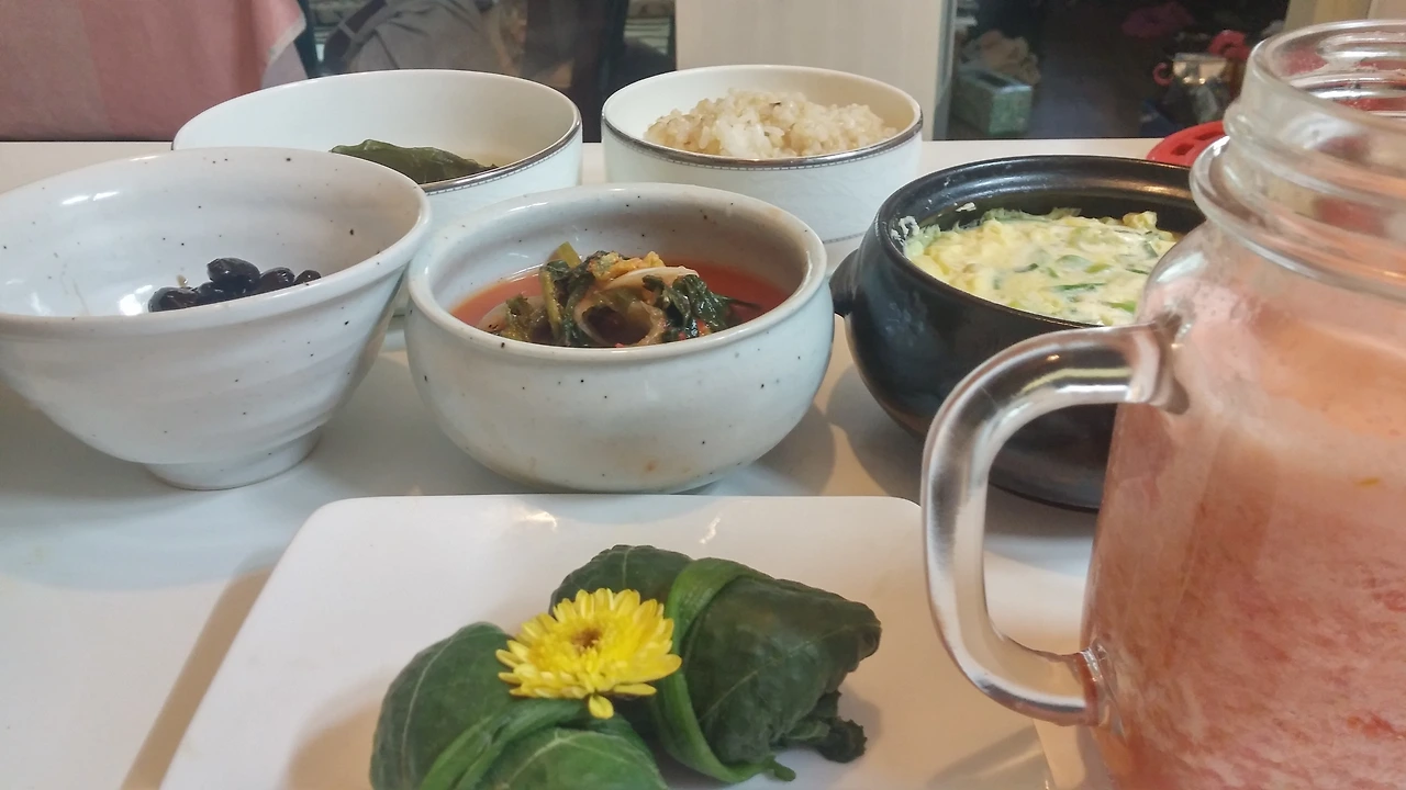 호박잎에 현미쌈장밥을 싸서