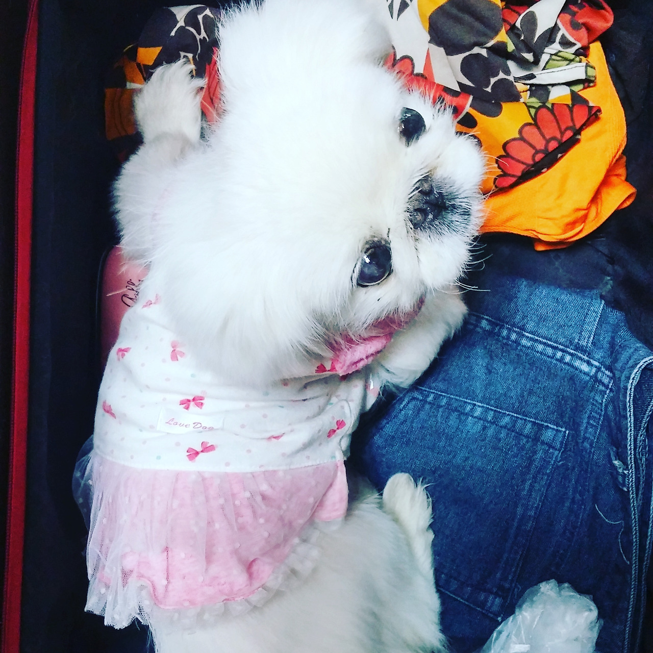 엄마인 내 옷이 가득한 여행가방 안이 아득했나보다
