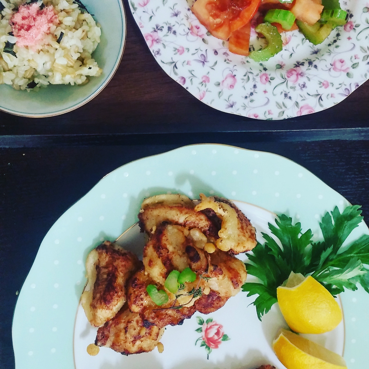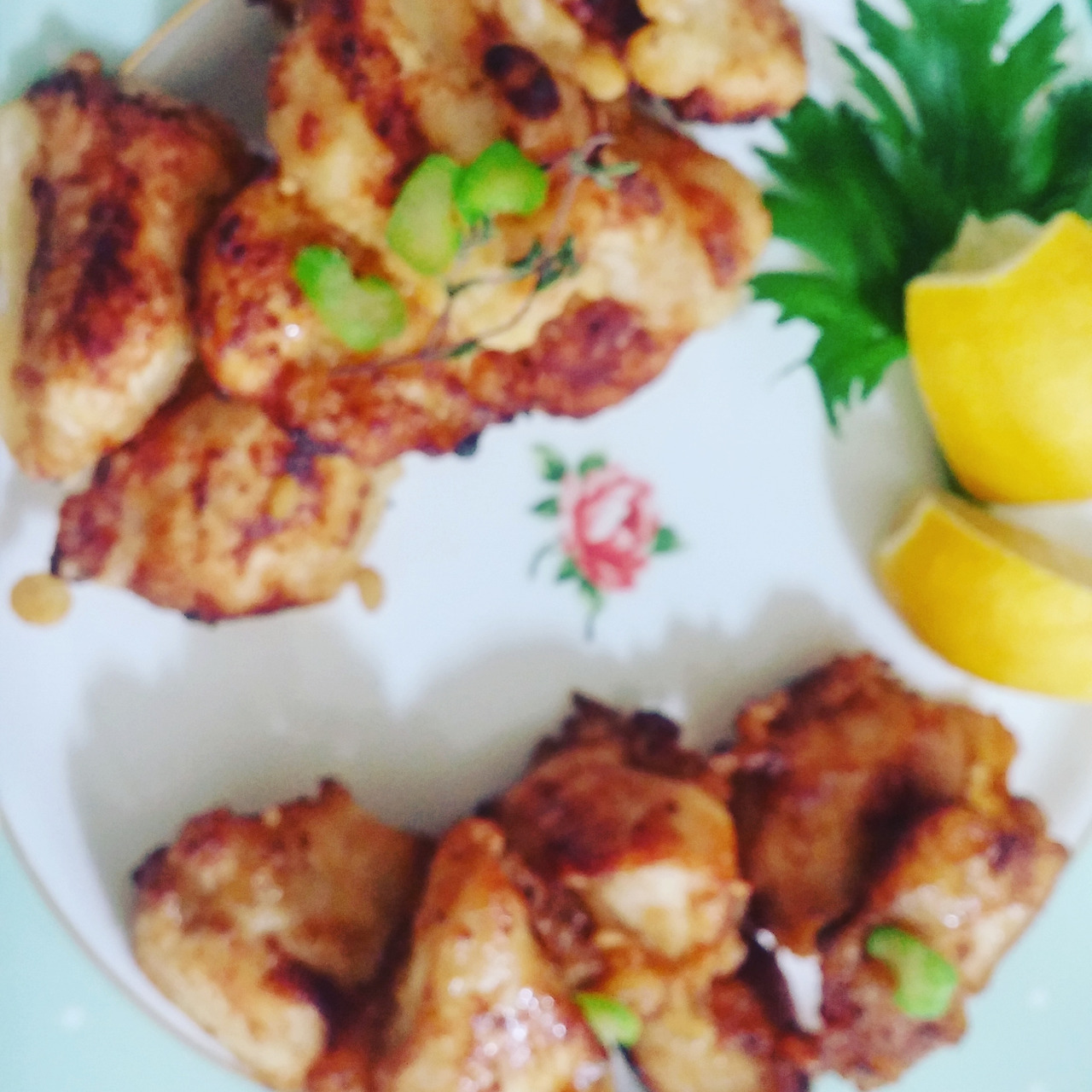 만들어 두었던 레몬시오와 우마미쇼유로 두 가지의 가라아게 (닭튀김)를 만들었다