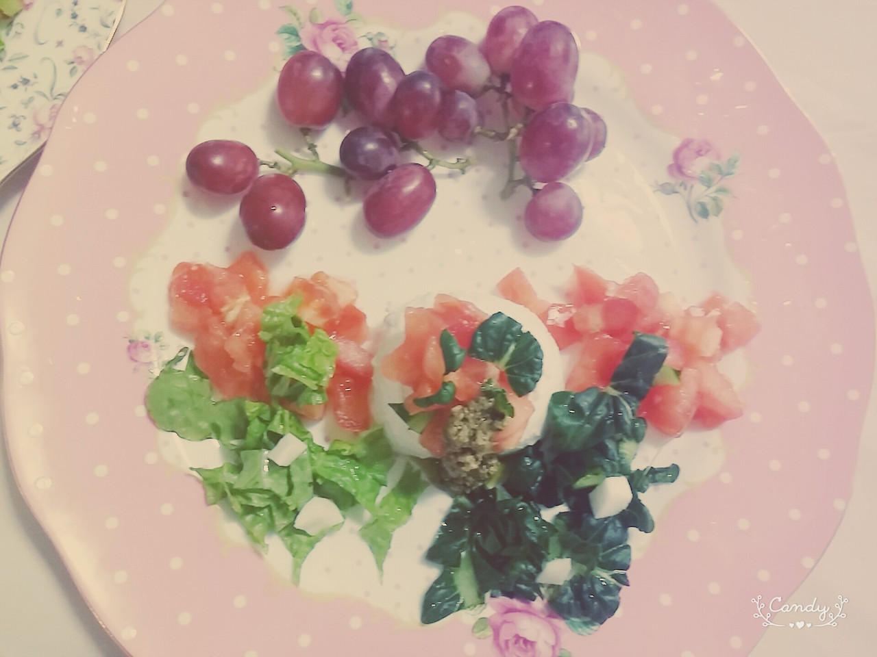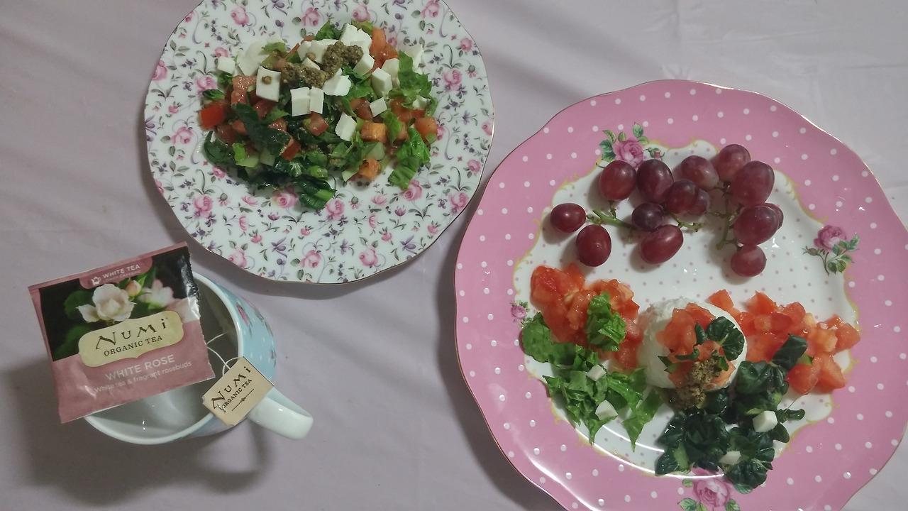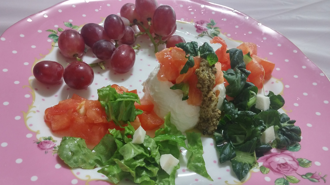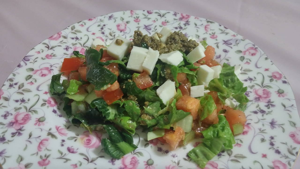 바질페스토와 토마토와 냉장고 속 비타민 채소와 상추
