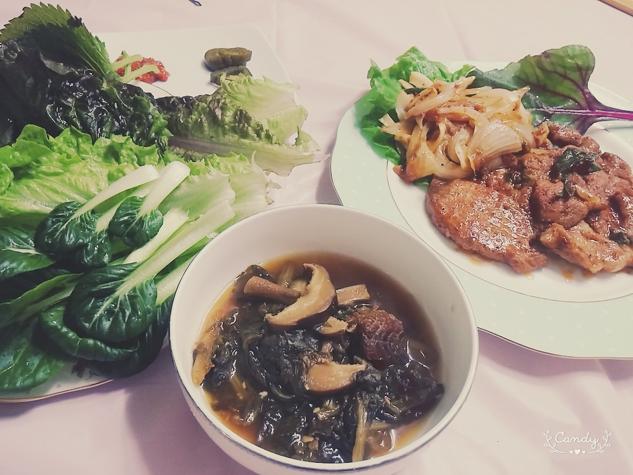 갖은 쌈 채소와 생강 가득 넣은 돼지목살로