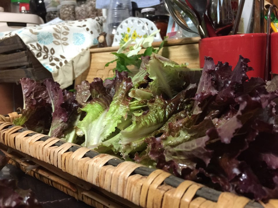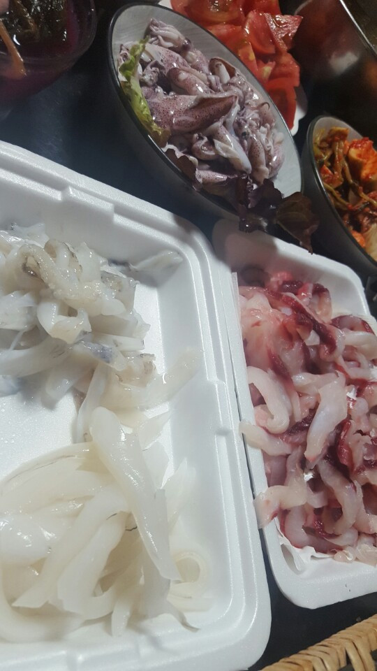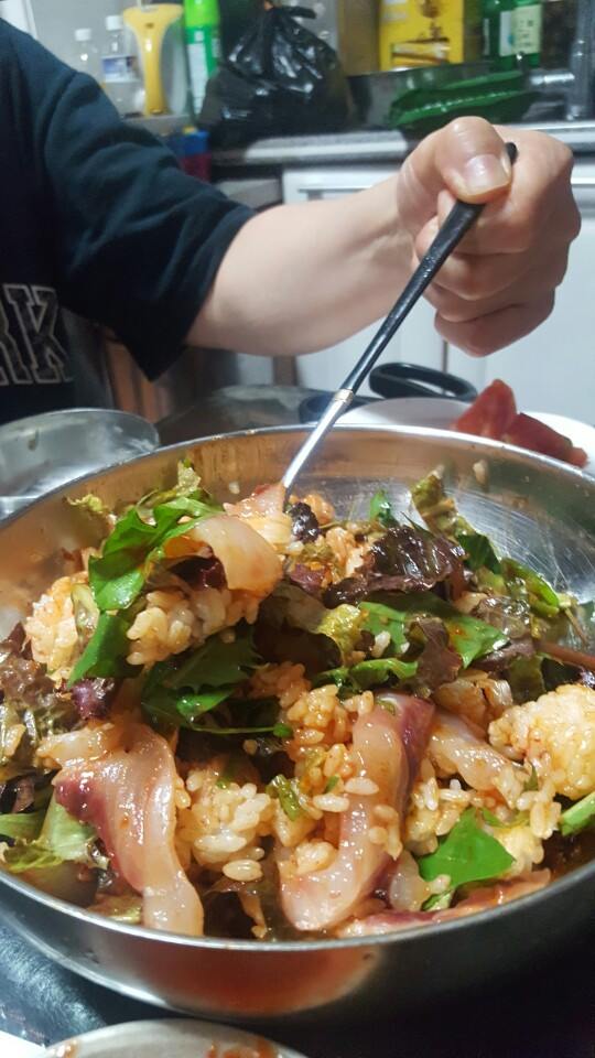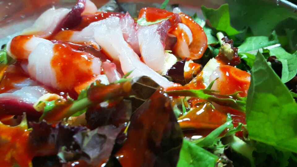 텃밭의 상추와 민들레에 오일 장의 보리숭어와 갑오징어 회를 한가득 입 안으로