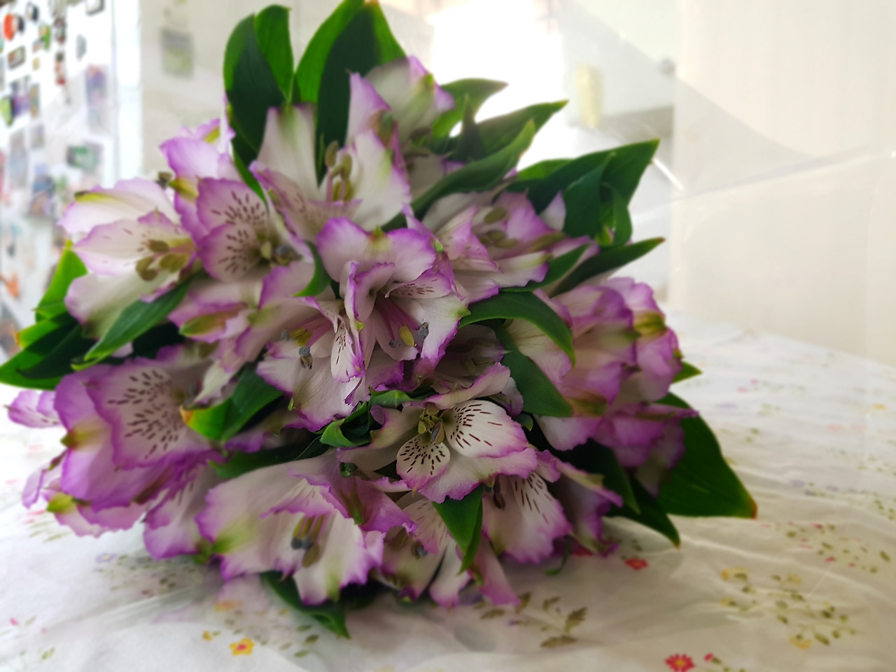 1단의 행복을 기원하는 마음의 음식과 누군가 가져오신 아름다운 꽃