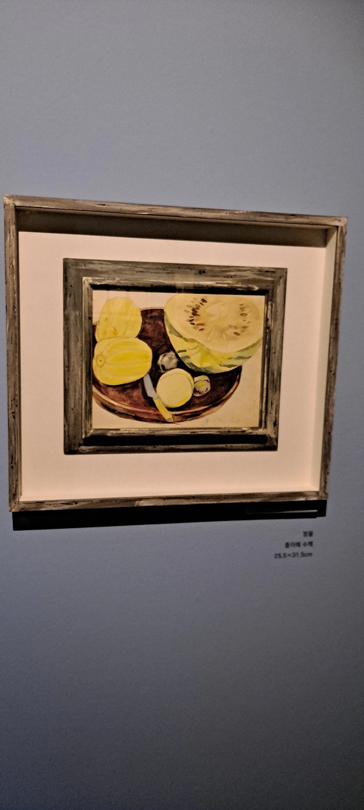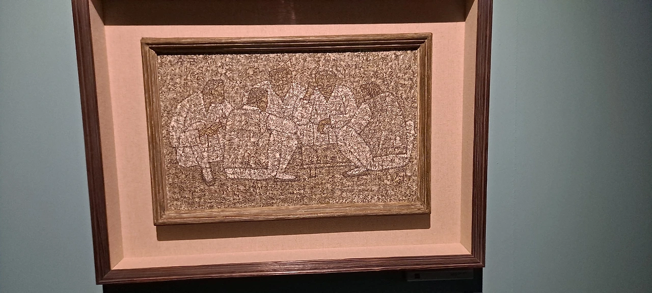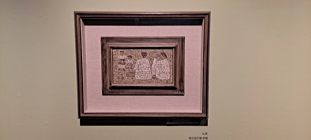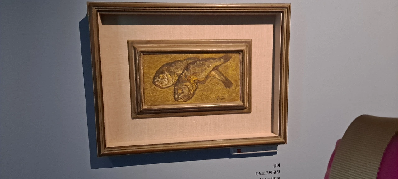 말만 박수근미술관이지 유화작품이 없던 시절 첫 기증한 유화작품.'굴비' 앞에선 왠지 가슴이 시리던. "내가 지난날, 어두운 단칸방에서 본 한밭 속의 고목, 그러나 지금의 나에겐 웬일인지 그게 고목이 아니라 나목이었다. 그것은 비슷하면서도 아주 달랐다.