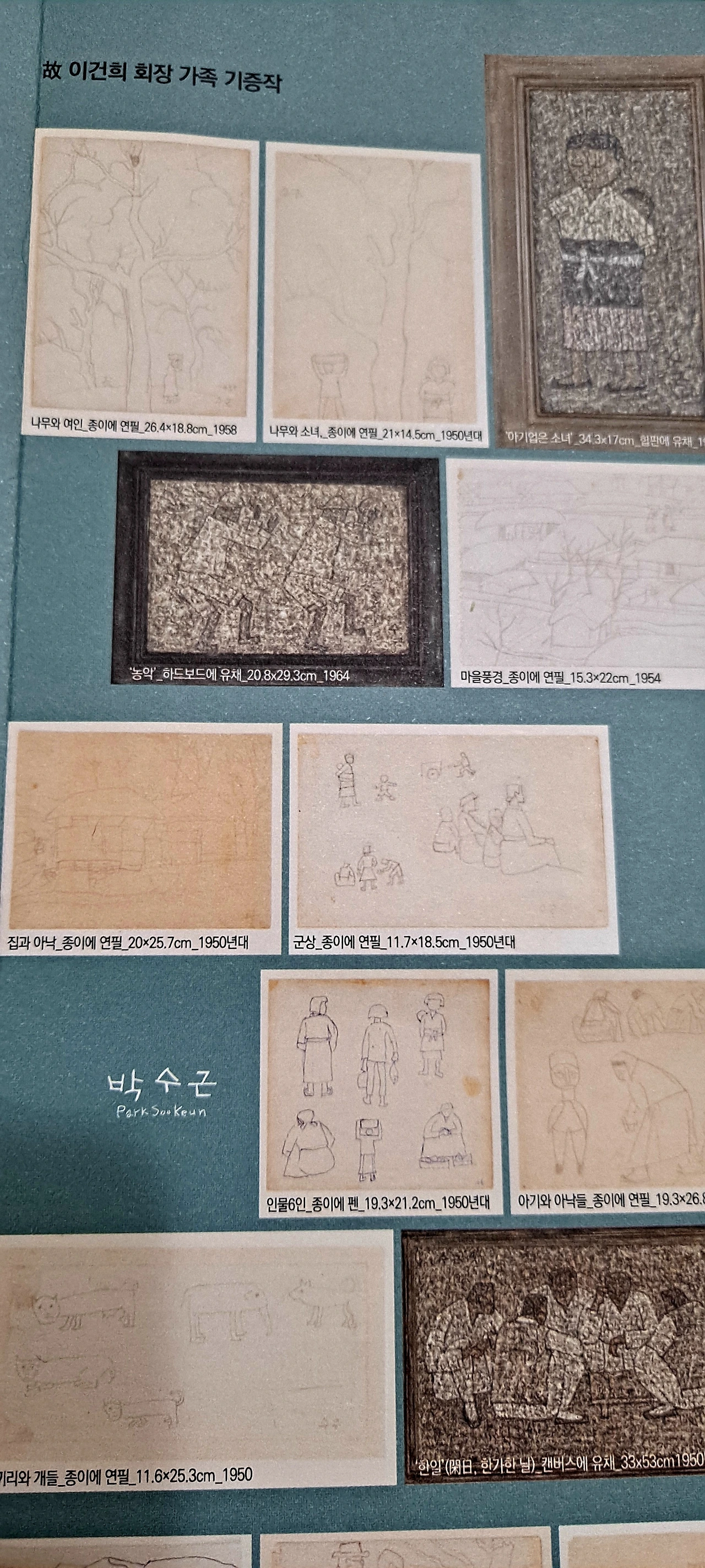 이번에 기증한 유화작품들은 '아기 없는 소녀 ' '농약', '한 일 (한가한 날)'', 마을 풍경'으로 박수근미술관에서 추후 확보해야 할 주요 소재별 유형의 유화 작품들이라 더더욱 기증의 의미가 크다. 이로써 소장하고 있는 유화는 총 17점이 되었다.