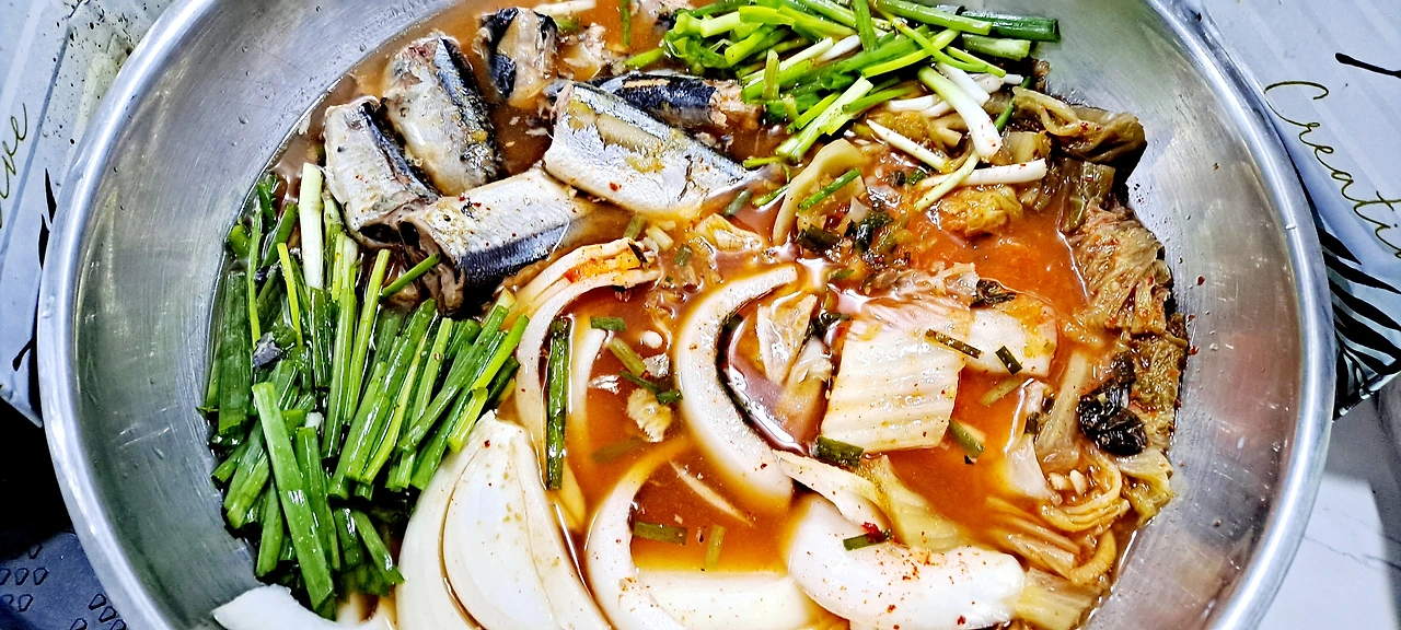 개운하게 다섯의 가족 저녁엔 꽁치김치찌개로!