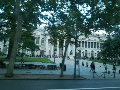 차창 밖의 출퇴근 길의 마드리드 시내
