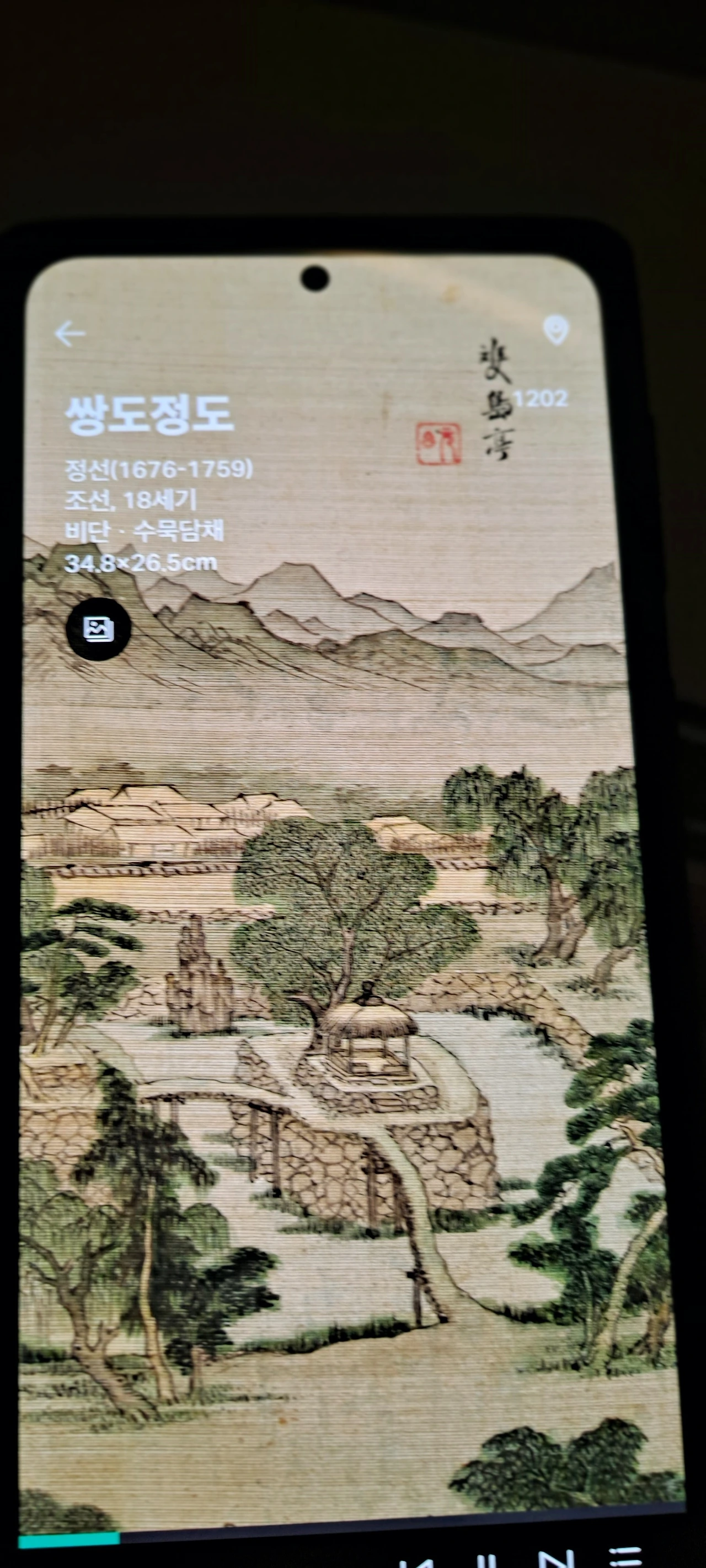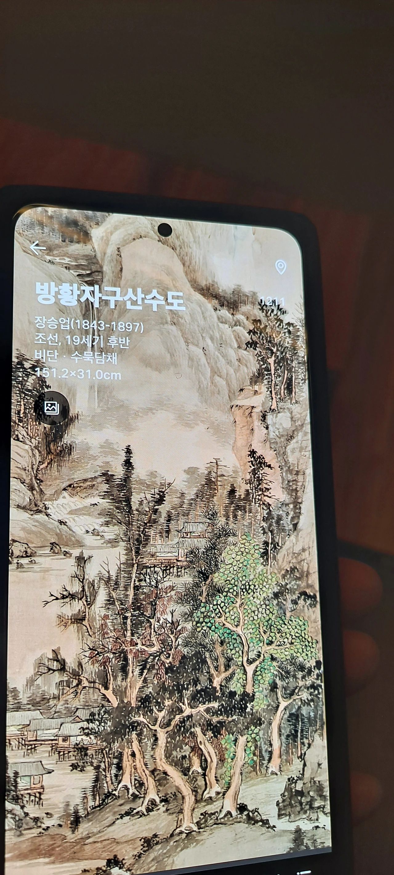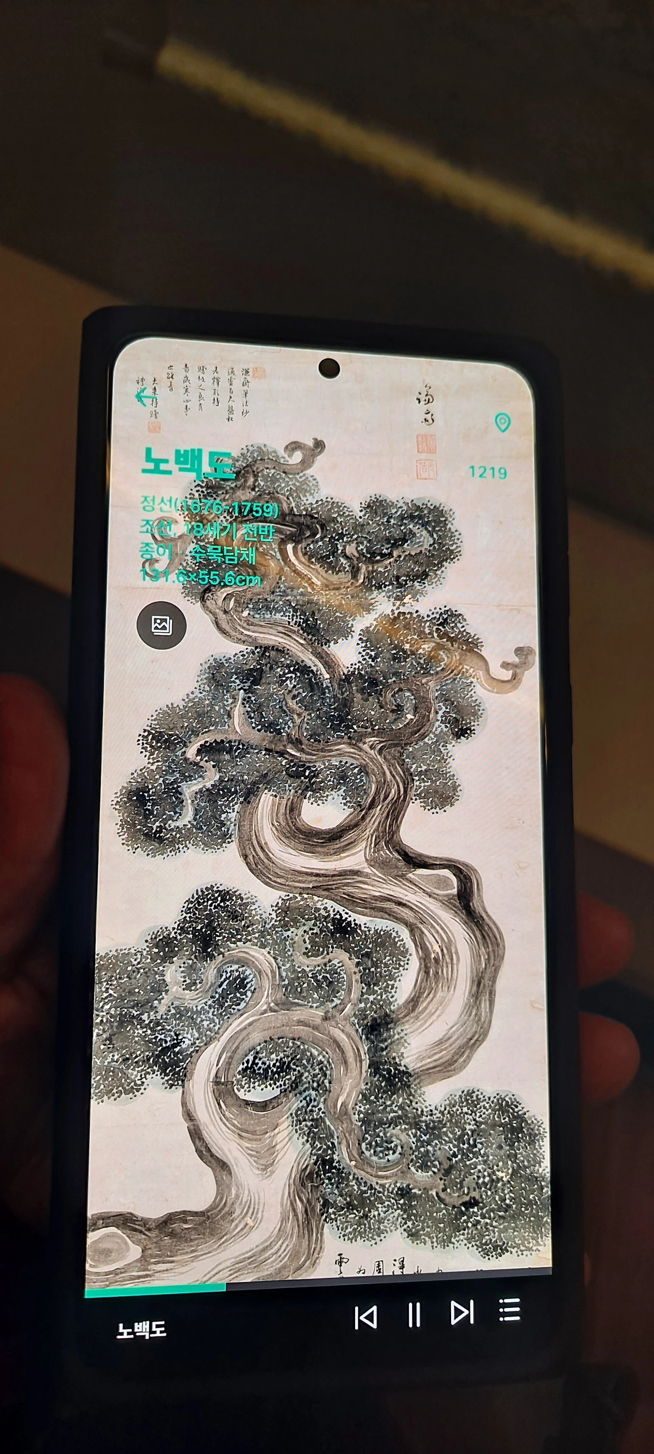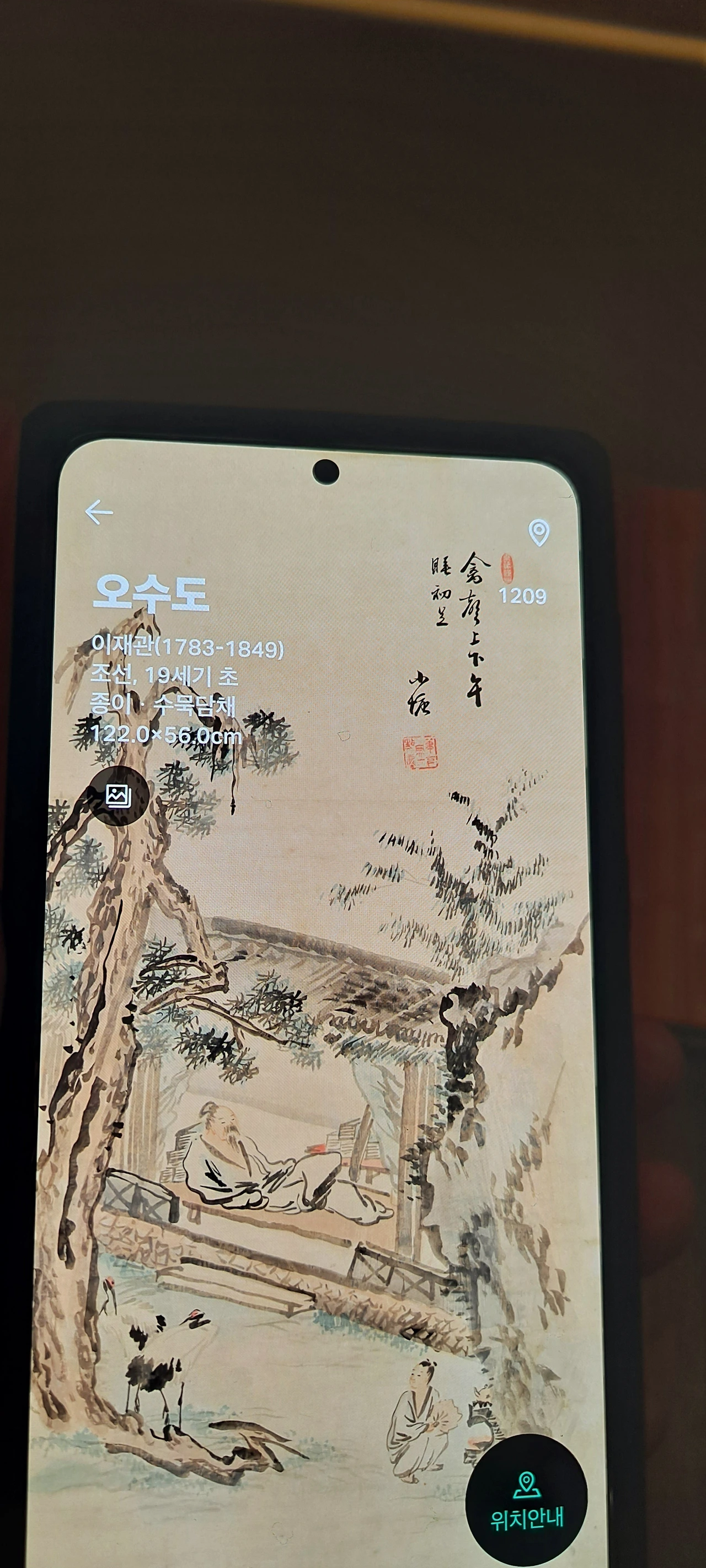 군선도의 위상을 지나 다시 멈춰선 작품앞... 이 뿜어내는 정선선생님의 작품...난 거구로 4층부터 보고 내려왔고 이곳의 사리함을 보며 한참을 거슬러 1980년 여고시절의 에피소드가 떠올랐다.