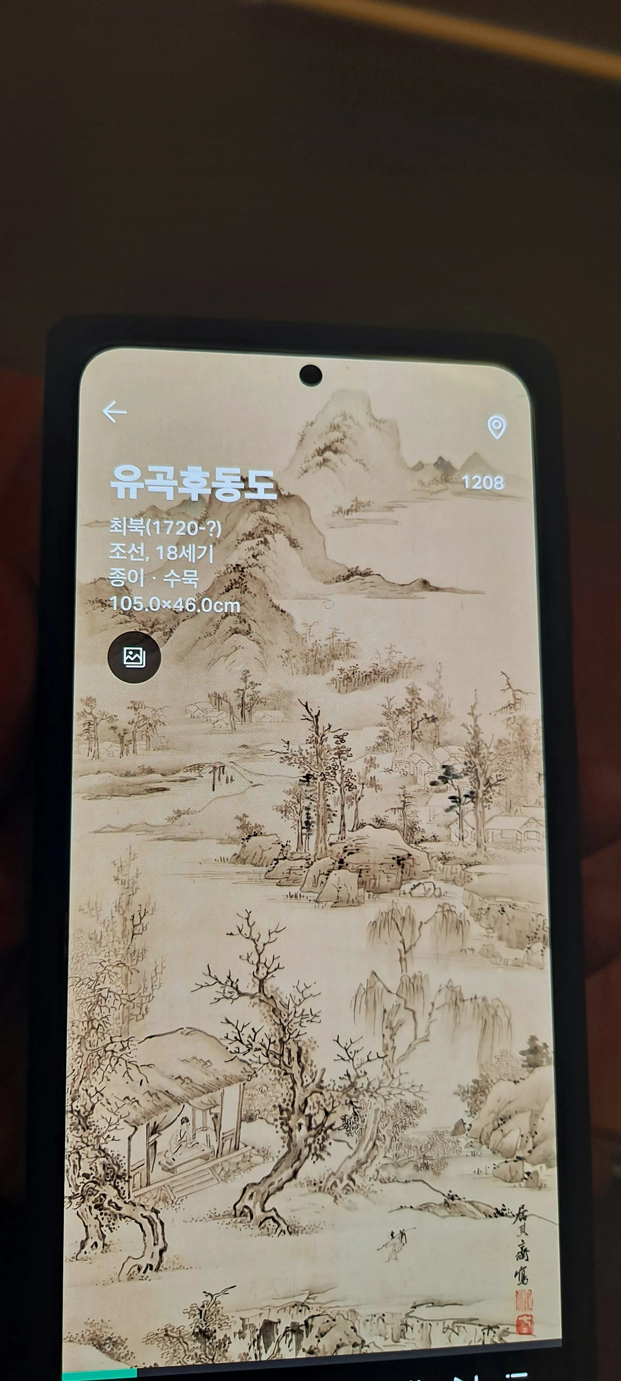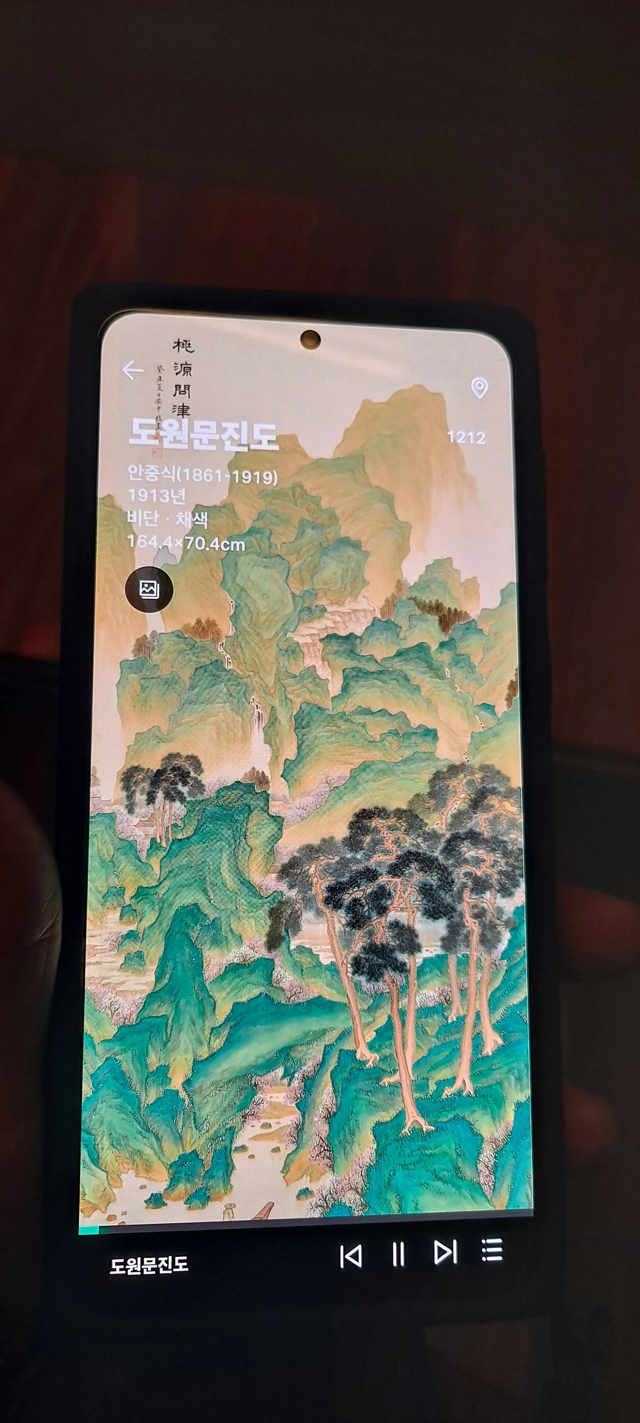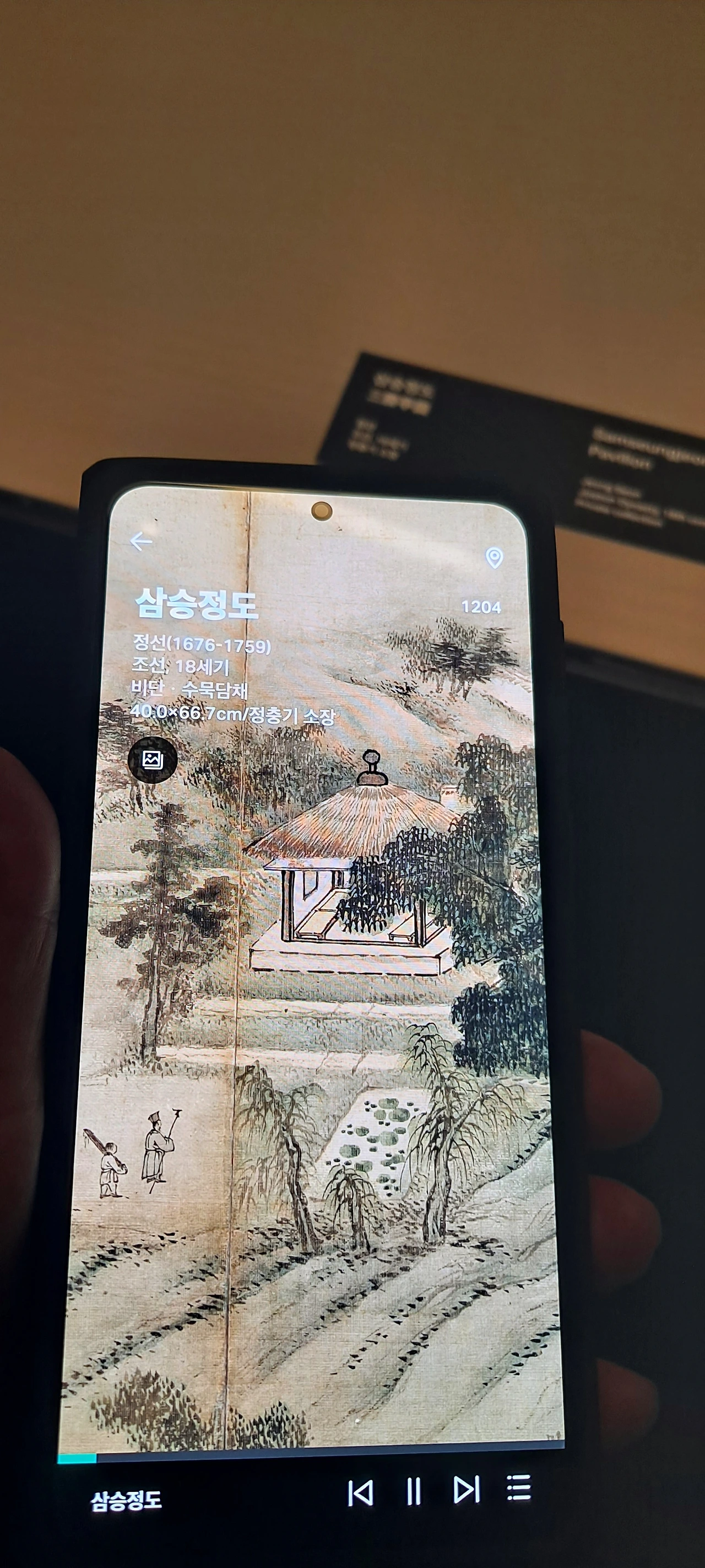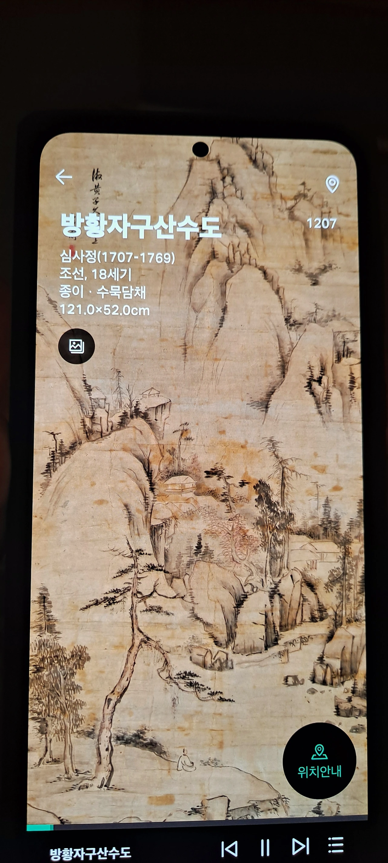 군선도의 위상을 지나 다시 멈춰선 작품앞... 이 뿜어내는 정선선생님의 작품...난 거구로 4층부터 보고 내려왔고 이곳의 사리함을 보며 한참을 거슬러 1980년 여고시절의 에피소드가 떠올랐다.